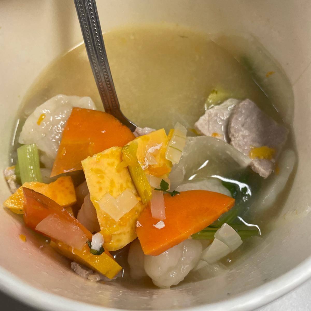 一打開碗蓋,先看到滿坑滿谷的青菜,原來什錦就是各種豐富蔬菜的意思,除了綠色蔬菜以外,還有大黃瓜、冬瓜、紅蘿蔔、南瓜等等,真的吃都吃不完