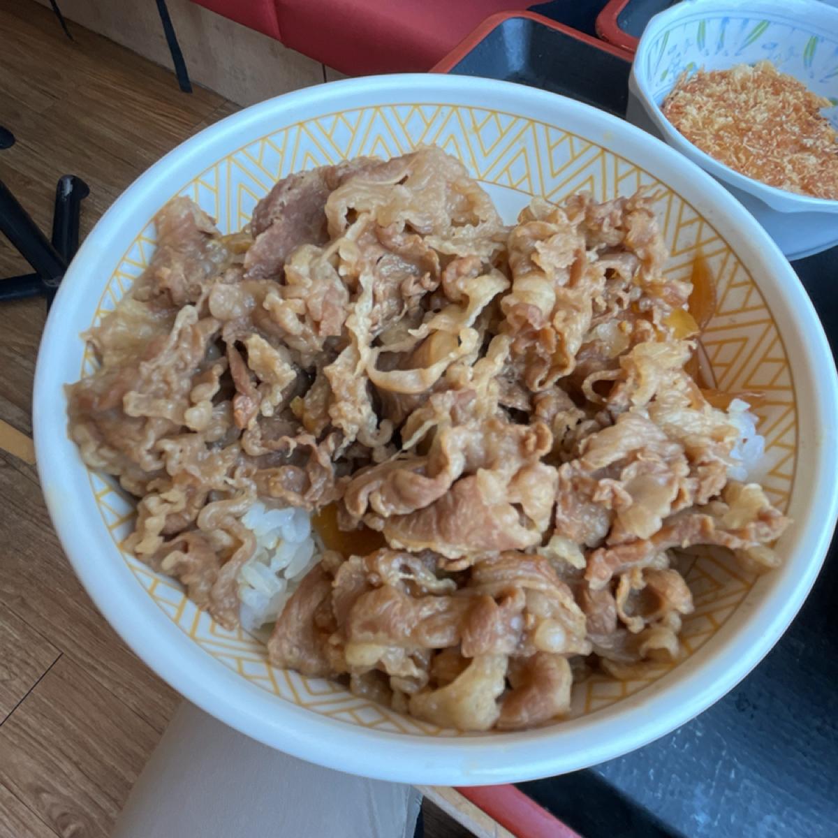 回到食物本身,以前吃Sukiya會覺得他的料滿敢給的,現在因為食材真的漲太多,牛肉的份量不再像以前,然後醬汁的部分也都還滿少的,很容易吃到最後就乾乾的,牛肉的油花也普普。而且現在大部分的Sukiya店也有一定的年紀,餐具又是美耐皿的關係,所以已經有一種復古的感覺🤣