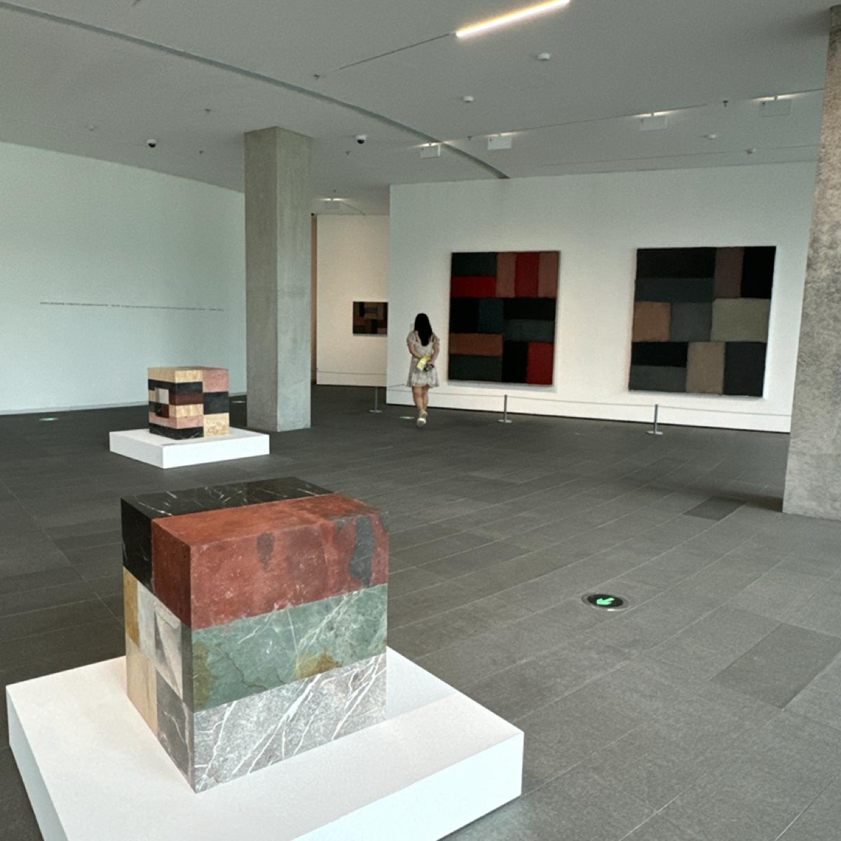 另外,強力推薦對面的「和美術館」,建築物本身是由日本設計師安藤忠雄所設計的,雄偉壯觀,內部使用大量清水模,跟一個很猛的旋轉樓梯。展覽也有意思,這次主打的是一個愛爾蘭藝術家(已故)的作品,使用大量的方塊作為創作,真的很酷,還有他衛生間對於男生女生的標示,也覺得很有意思。