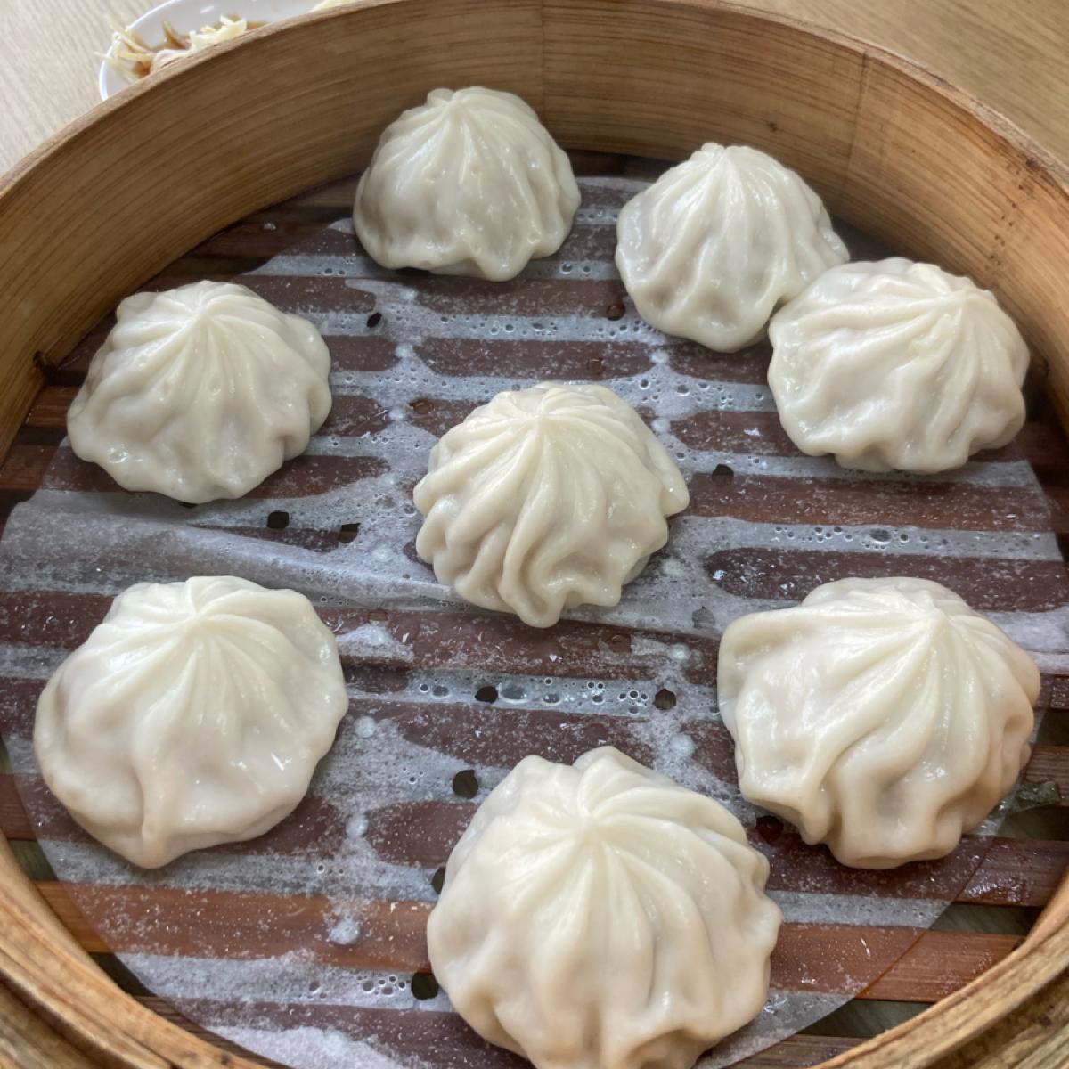 上海小籠湯包有一點肉汁,內餡還算好吃,皮不會太厚。