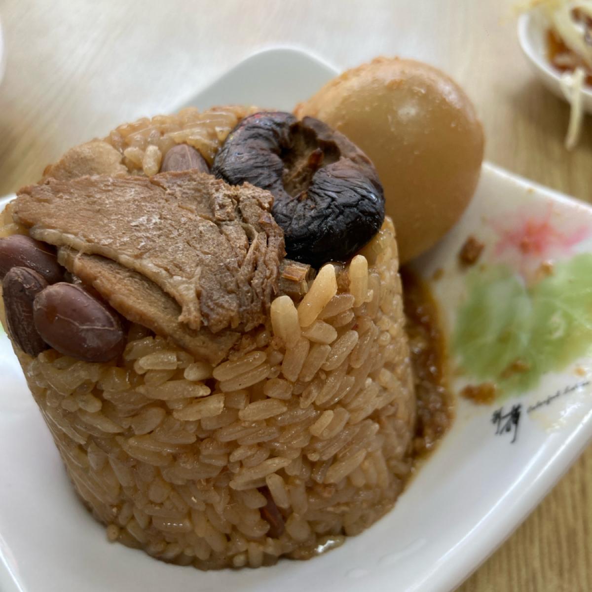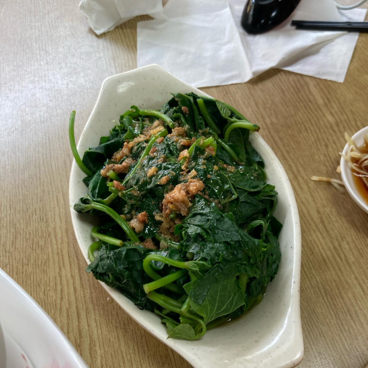 燙青菜是地瓜葉加上滷肉汁,地瓜葉很嫩不會老,而且給的份量算多,滷汁很香,讓青菜調味剛好。