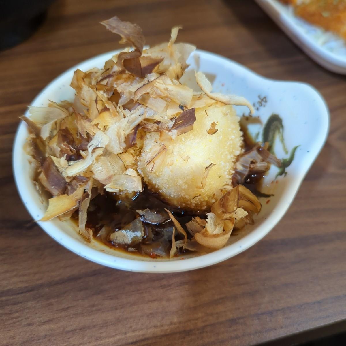 炸豆腐粉上的很薄 而且炸得滿酥的