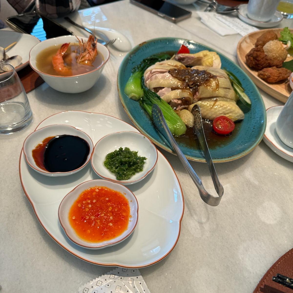 -海南雞拼盤-雞肉有嫩,不過海南雞味道不明顯,旁邊油蔥醬還不錯
