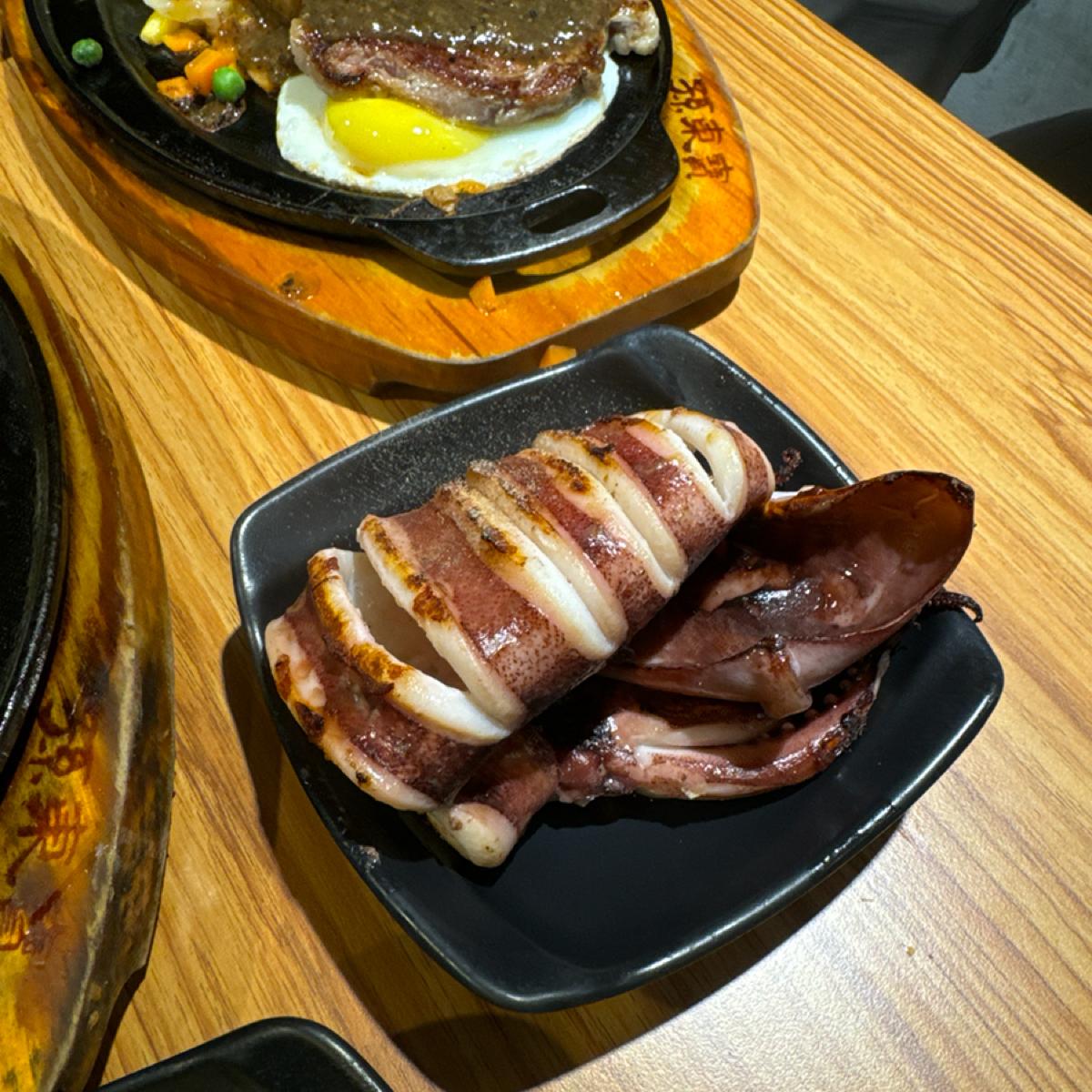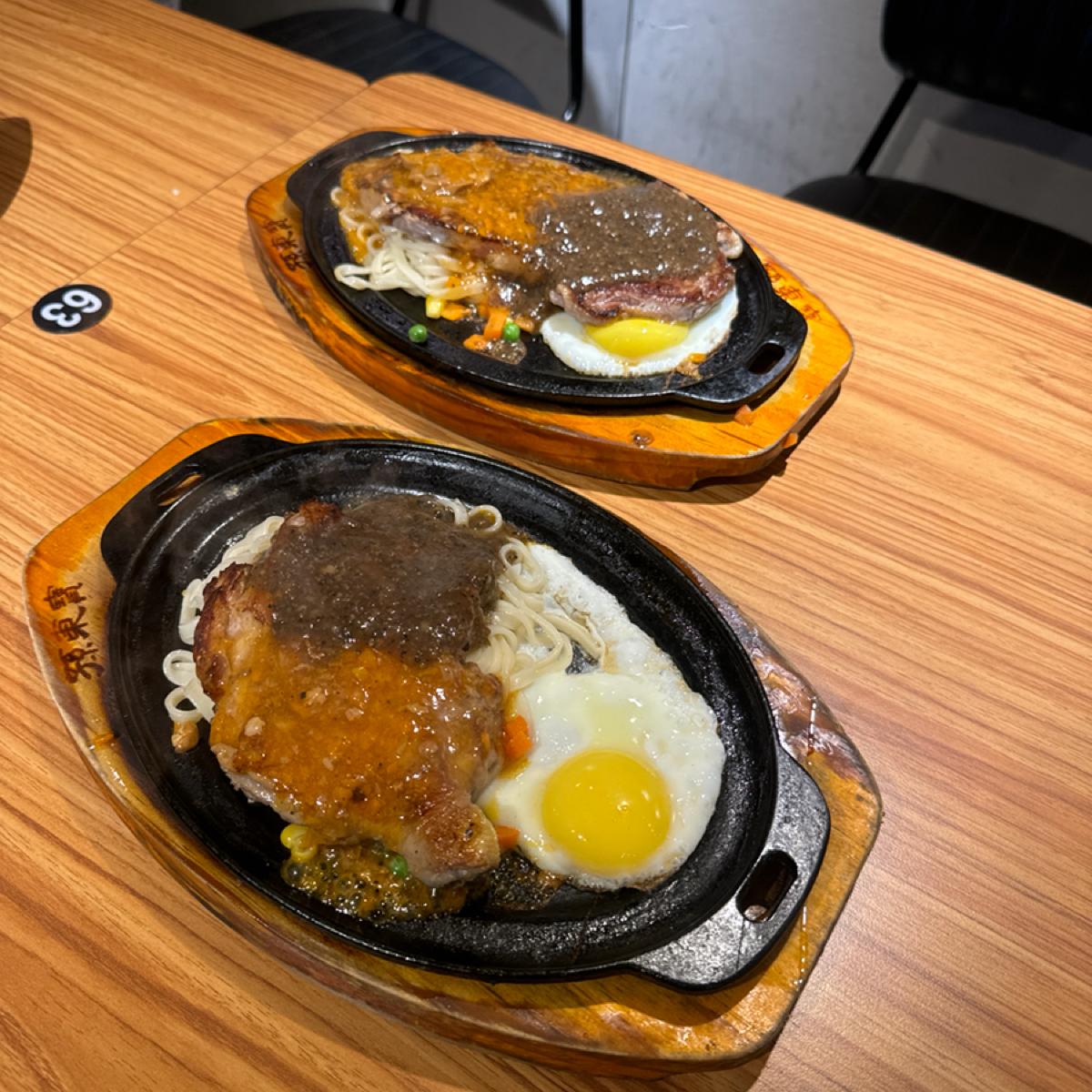 主餐點了澳洲穀飼肋眼牛排,份量很大,剛上桌時五分熟,口感鮮嫩。但因為鐵板持續加熱,吃到後面熟度變高,肉質稍微變硬,影響口感。雞排則是有先醃過,肉質蠻嫩的,但個人口味上不太喜歡。