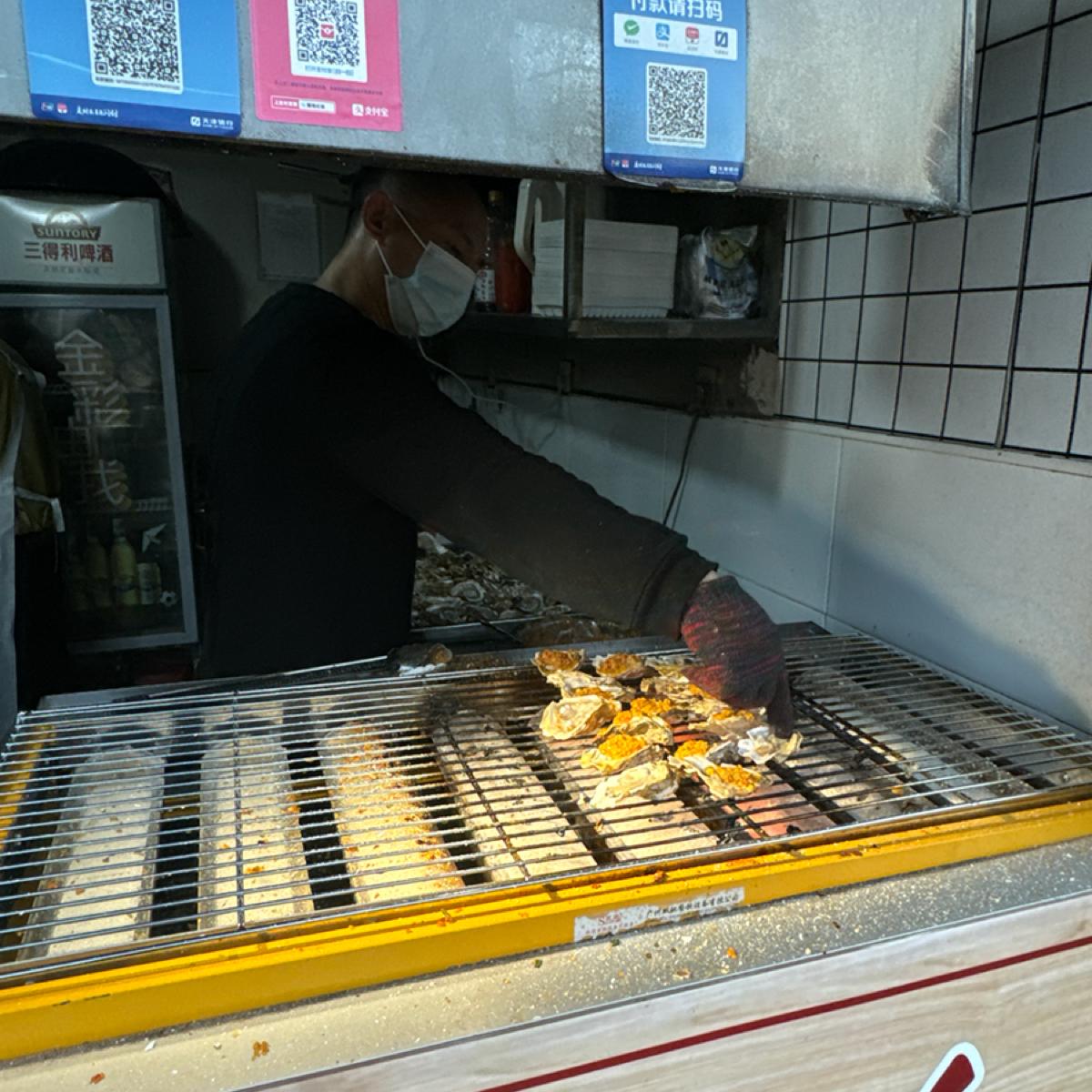 不過缺點就是完全沒有座位!只能拿到旁邊,有個玻璃罩子,一堆人在那邊吃烤生蠔