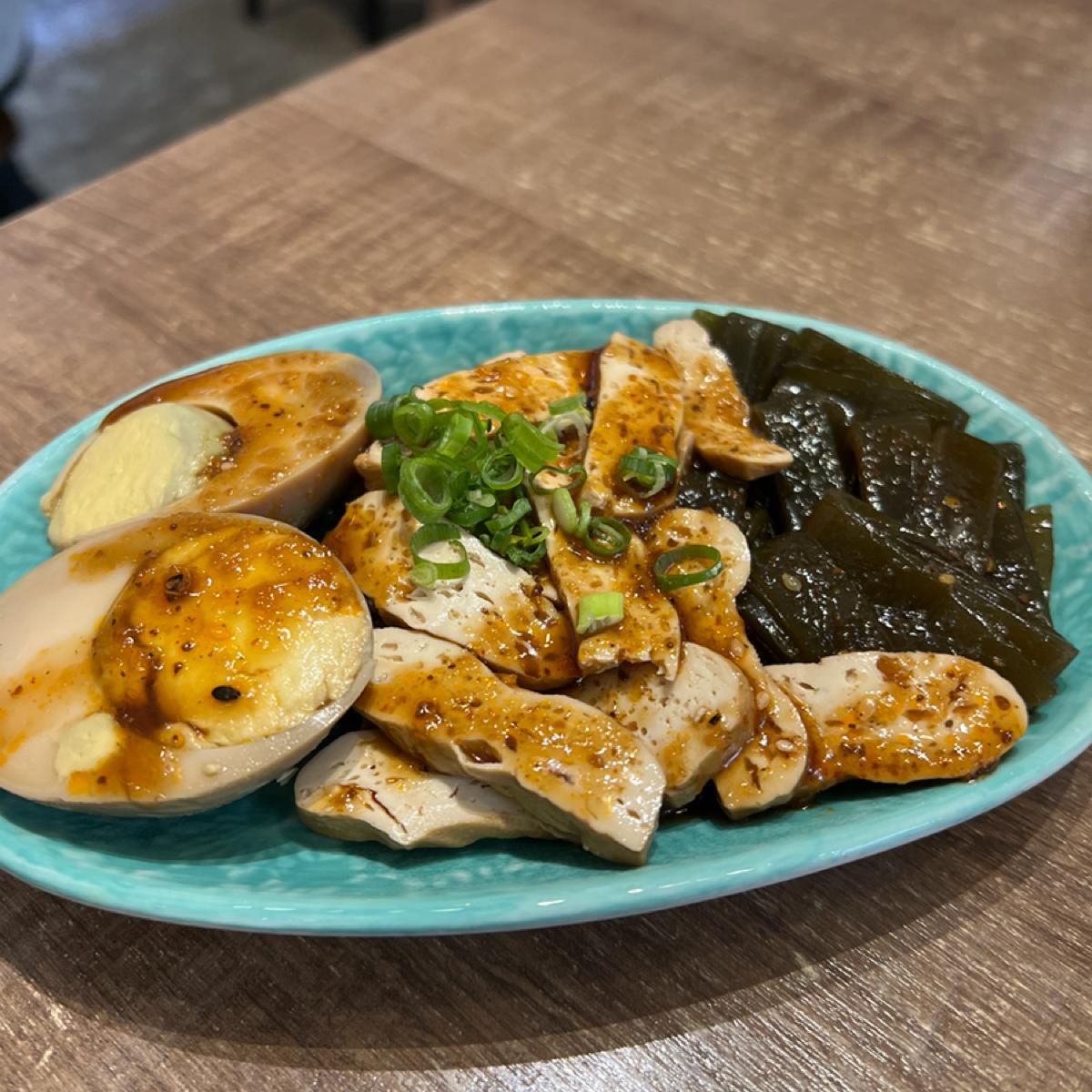 經典小菜組合$50,則有豆乾海帶跟滷蛋,搭配醬料口味也還不錯。