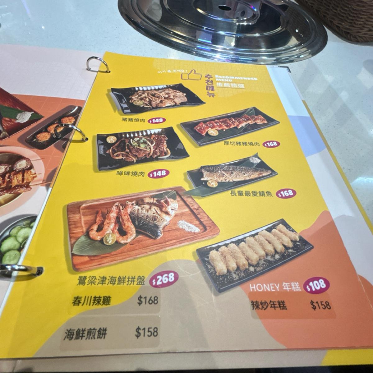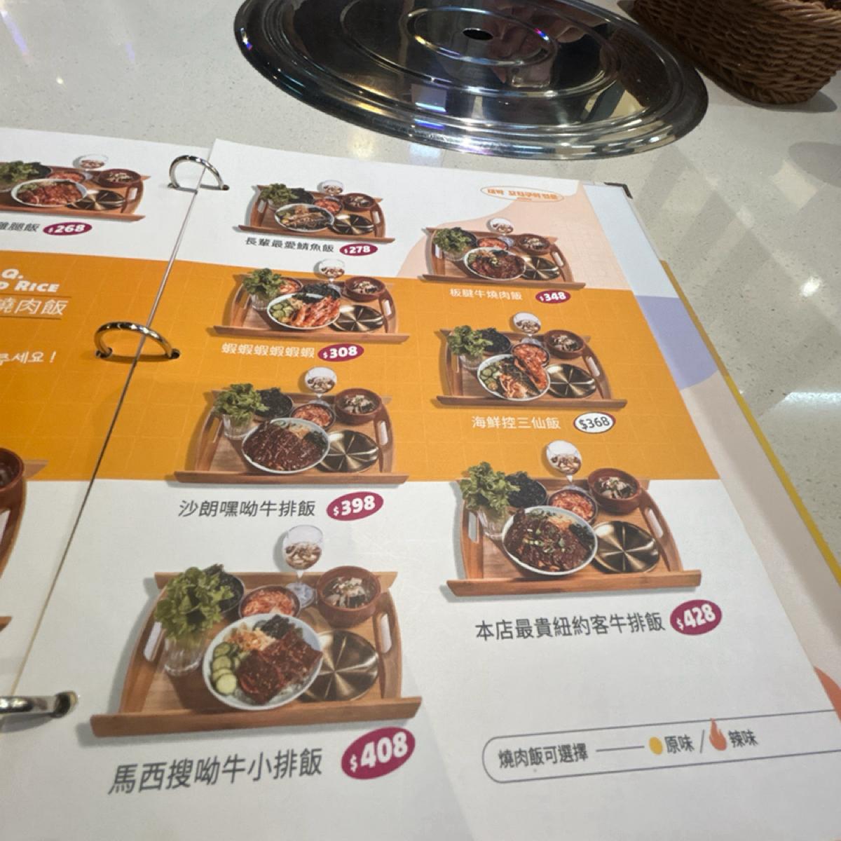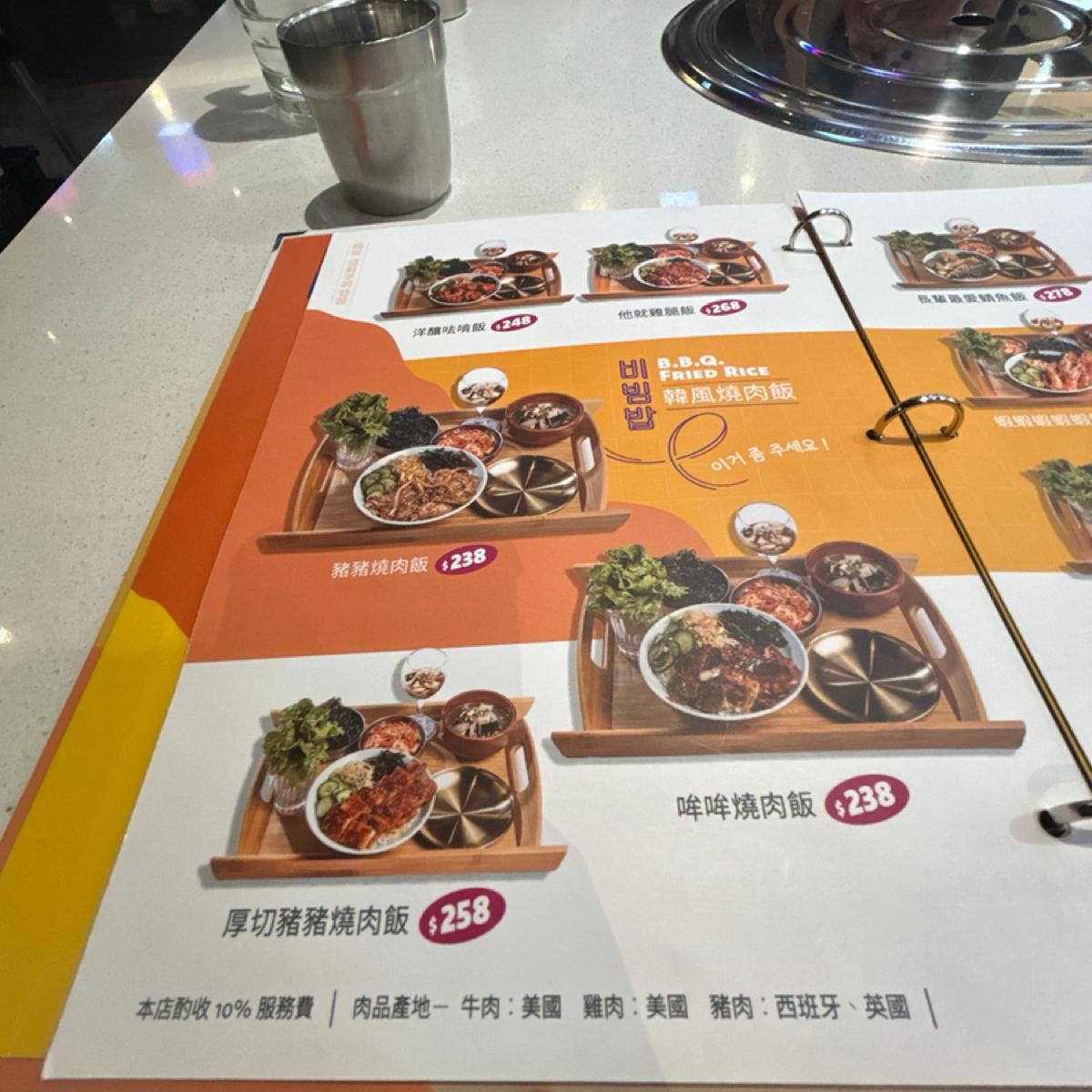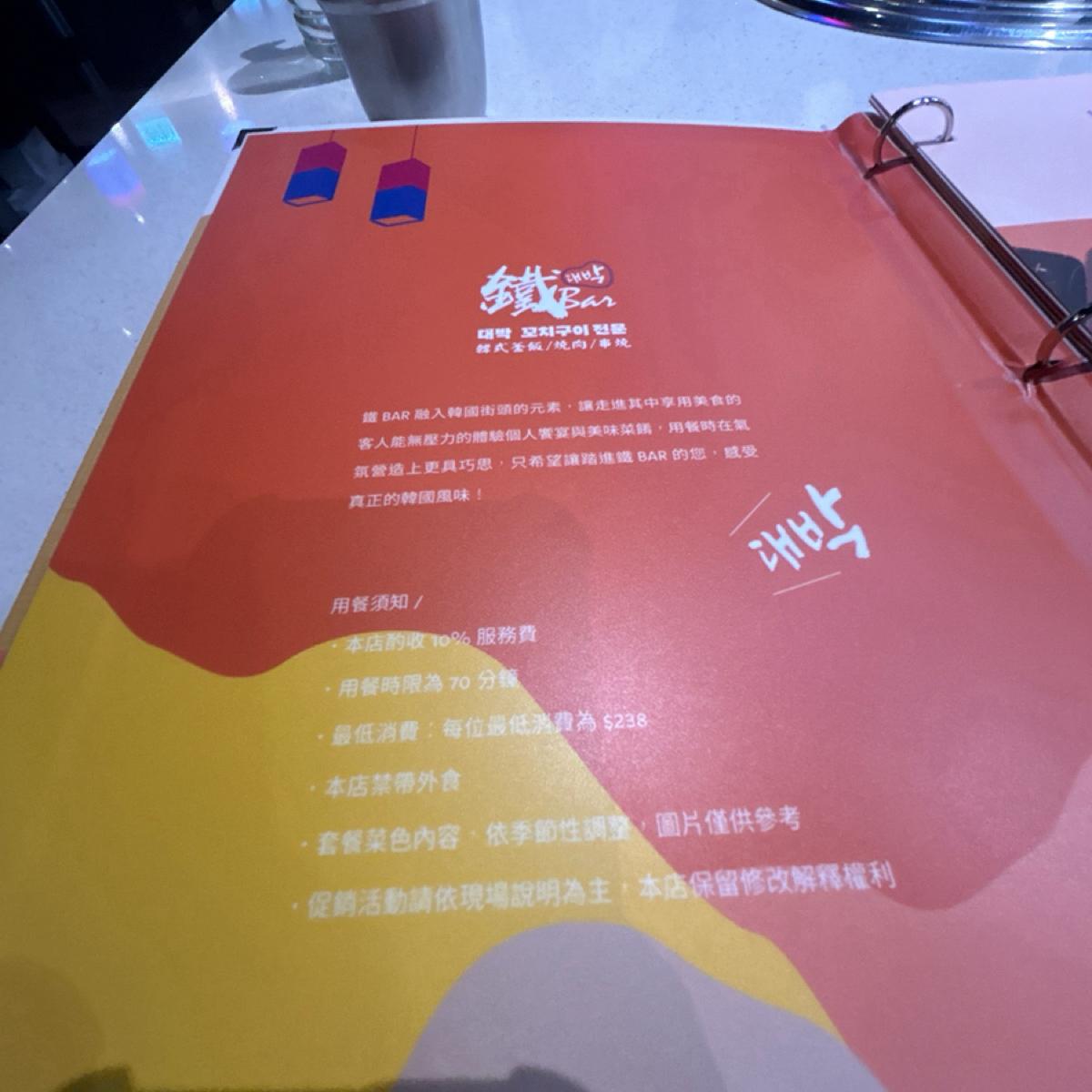 套餐皆會附一些韓國小菜及一杯檸檬愛玉青蛙蛋,每個人低消為238$,皆需加10%服務費。