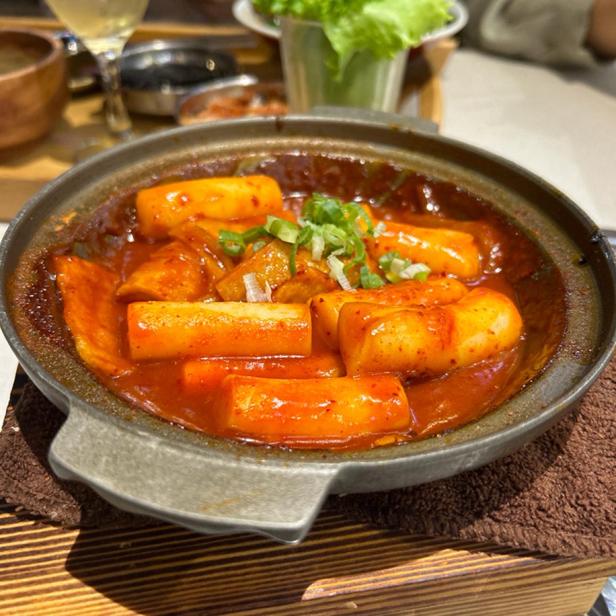 🌶️辣炒年糕的醬料有小辣,裡面有好幾條粗的年糕及魚板,吃完辣炒年糕再喝一口泡菜鍋的湯會獲得加倍的辣⋯🤣。