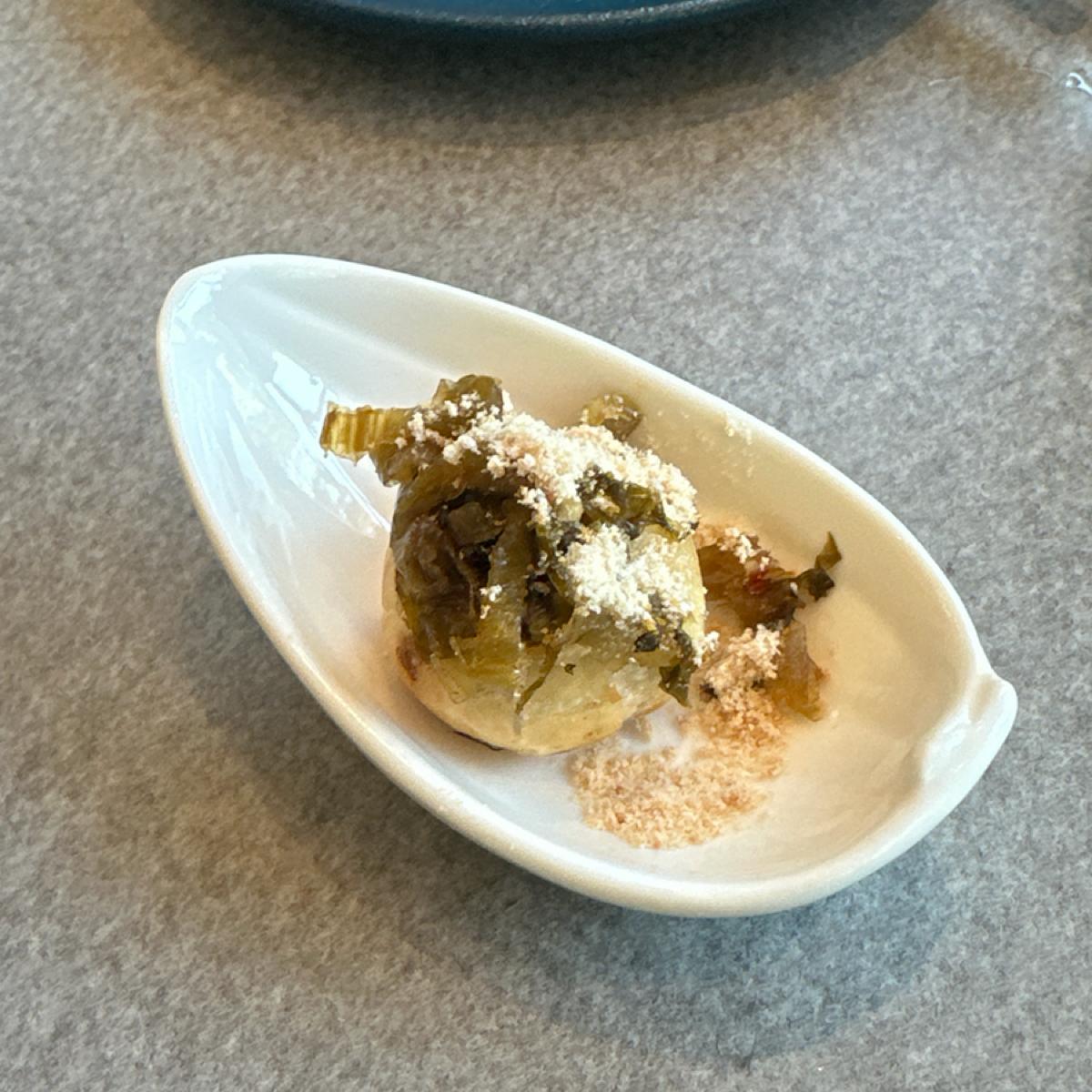 炸湯圓上面撒著花生粉和酸菜,內包裹著滿滿的芝麻餡,甜鹹滋味交融相得益彰,蠻新鮮的滋味也意外的很搭,很有特色的一道菜。