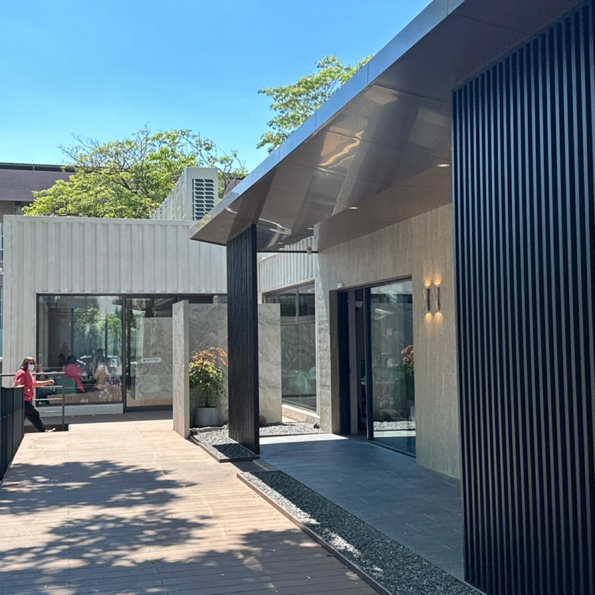 (建築設計兩廳的走道是走廊式沒有遮蔽物的,所以如果下大雨可能會有被雨噴到的機率,雖然下雨王品會有遮陽棚)