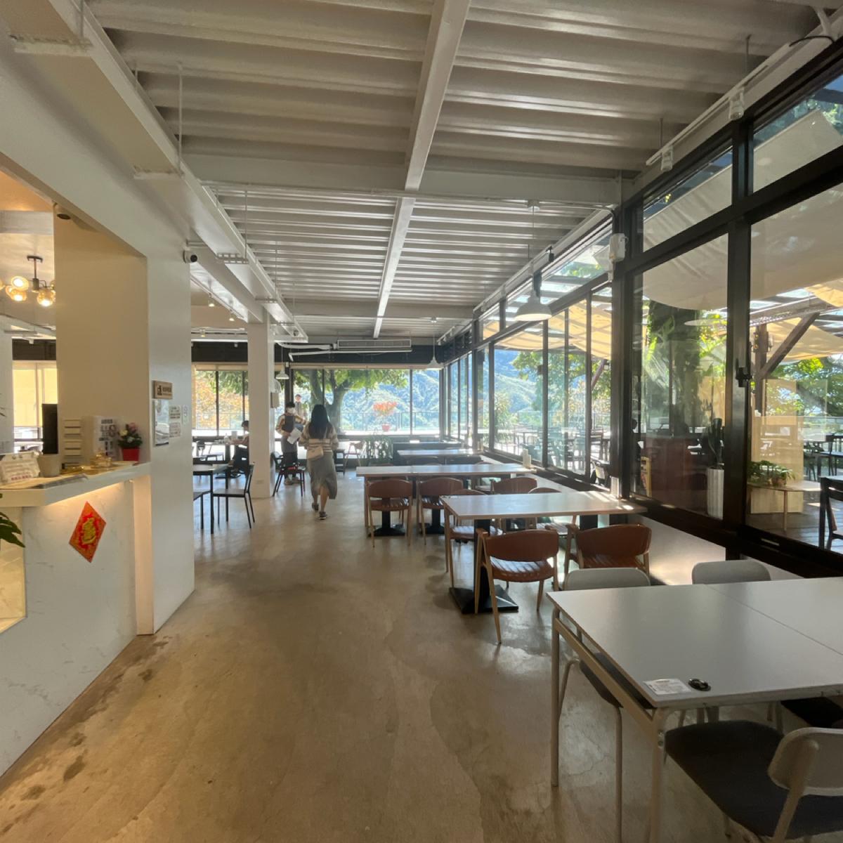 一片大窗戶,可以完整看到整座山,戶外有設計座位,天氣適合可以坐坐,也有網美打卡區,覺得適合一個人來放鬆、情侶/閨蜜約會和親自出遊的地方,但是要注意用餐2小時~