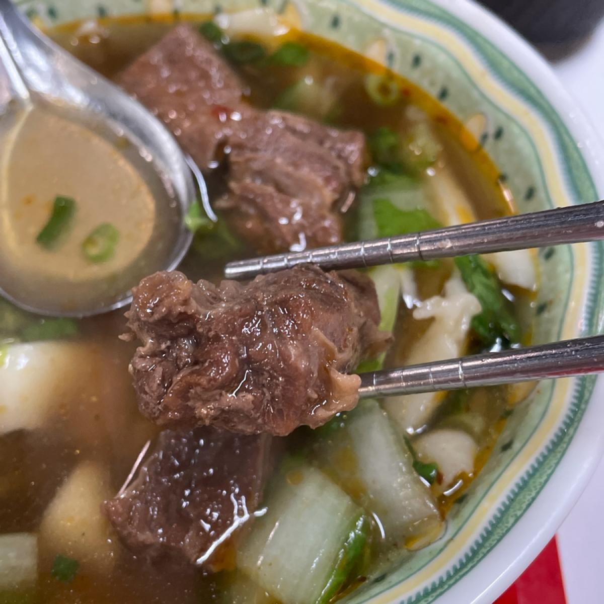 我覺得湯頭是番茄湯勝於紅燒湯 牛肉香味很重 番茄湯底又加蛋花 口感加分 牛肉片則是瘦肉為主 蠻嫩的 但我更喜歡紅燒湯頭裡的牛腩 吃起來更有肉感 整體cp值很高 一碗130 佛! 如果平日來應該更好
