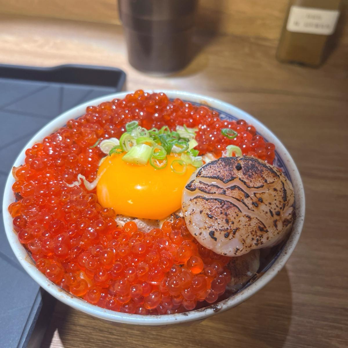 若說拉麵是主角,那麼這碗叉燒飯絕對是驚喜的配角,蛋黃、鮭魚卵與炙燒干貝鋪滿飯面,豪華感十足,甚至一開始幾乎看不到底下的叉燒,入口時鮭魚卵顆顆爆汁,干貝鮮甜厚實,與底下的叉燒交織出多重風味,視覺與味覺的雙重滿足,讓這道飯品成為必點推薦。