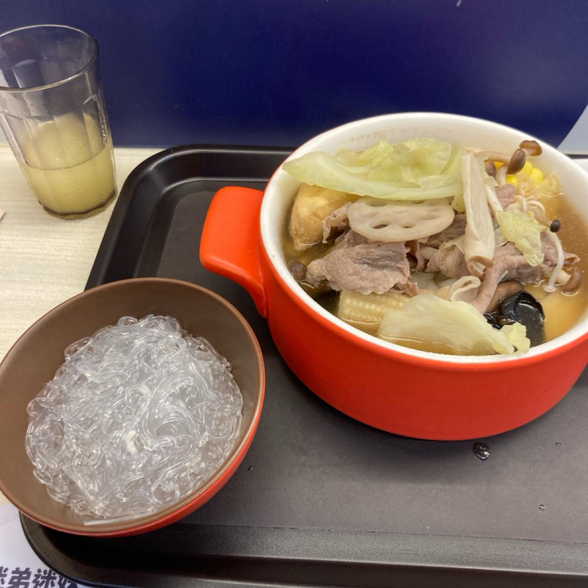 我的主餐是豬肉,副餐是冬粉,豬肉是豬肉片,沒有太肥還可以接受,而且肉片算有厚度,冬粉會另外用碗裝,因為會吸湯汁,可以自行決定要不要倒入鍋內。