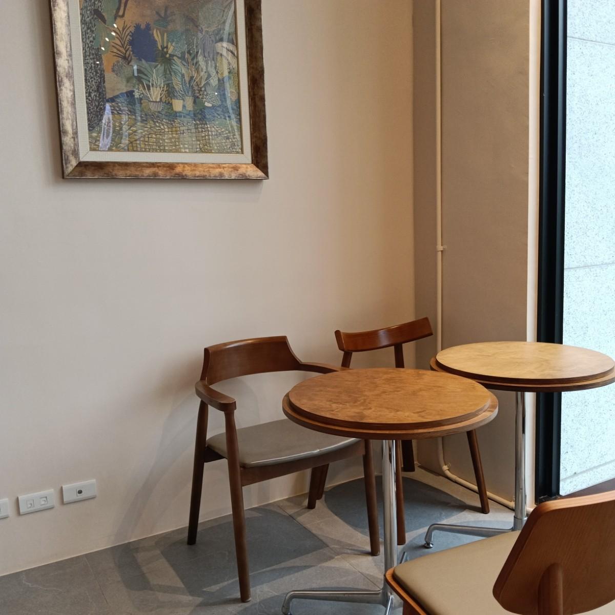 走進店內那一瞬間,讓我眼光很亮,牆壁跟磁磚是採用白色,座位的椅子跟圓形桌都是咖啡色,除了二人到四人桌之外,也有一長形桌,適合七人桌,更棒的是插座可以自由使用