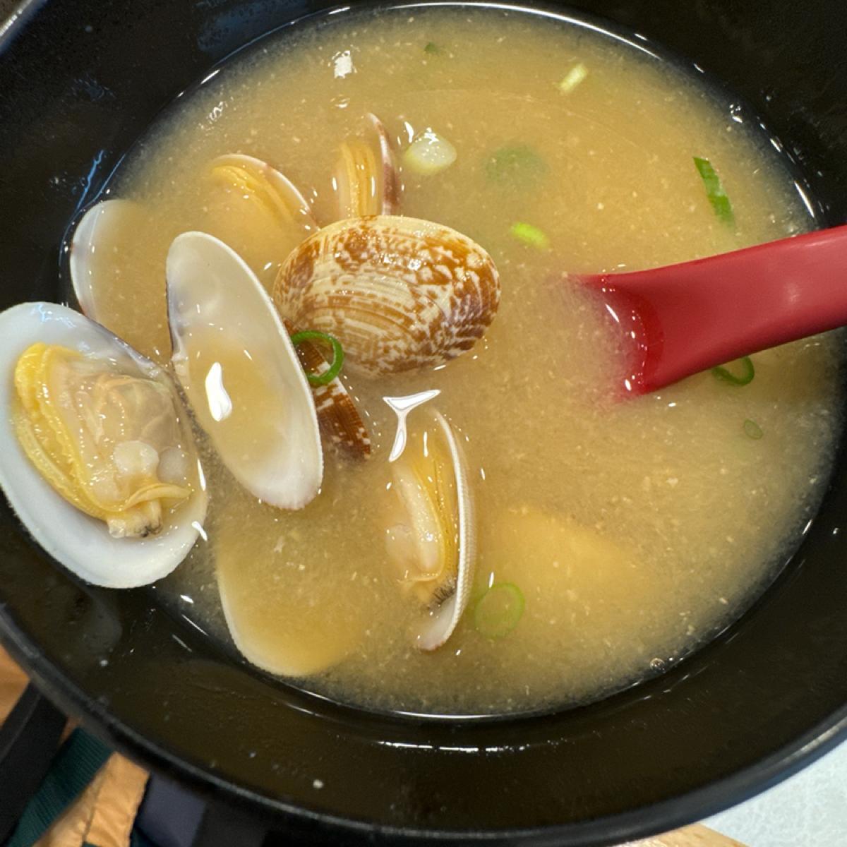 -花蛤味增湯-60-裡面花蛤大約有六顆,都還算肥美,味噌湯味道也算濃郁,有些許黃豆顆粒,比壽司好吃