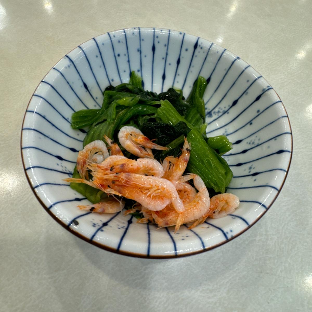 -櫻花蝦菠菜-40-非常小ㄧ碗,菠菜是冷凍退冰感比較濕軟,櫻花蝦是濕的不過很少。菠菜沒有調味。整體不推薦點