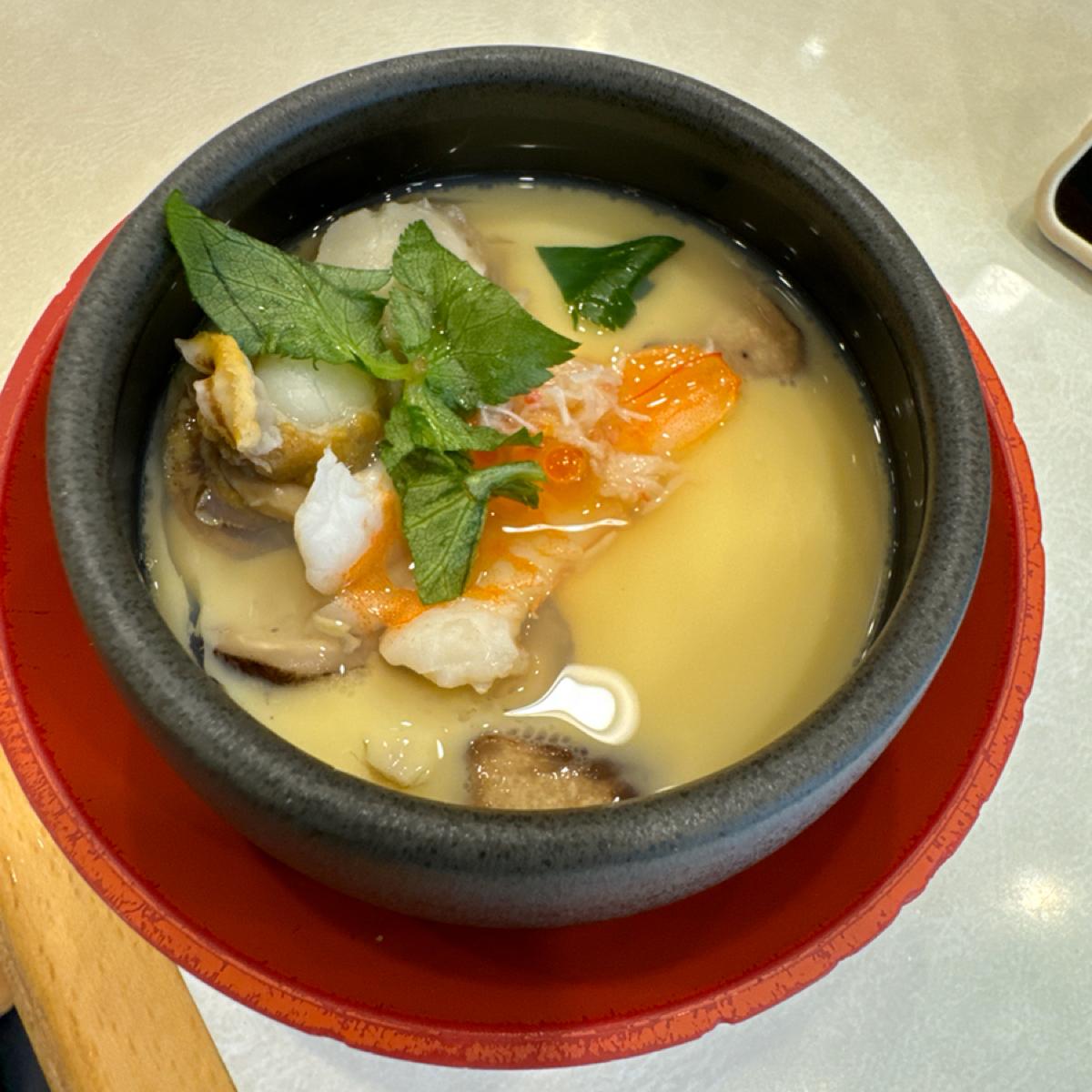 -扇貝茶碗蒸-80-裡面有兩顆小扇貝,一隻薄蝦,些許鮭魚卵跟香菇。茶碗蒸本身的質地滿鬆散的,比較偏水,但裡面的高湯味道還不錯!餡料就中規中矩,香菇味道濃郁