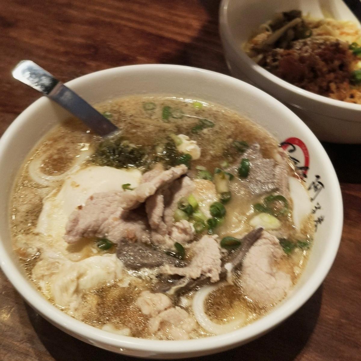 最有印象的是豬肝嫩不會乾柴,湯頭偏油,配料有半熟蛋、豬肝、豬肉片