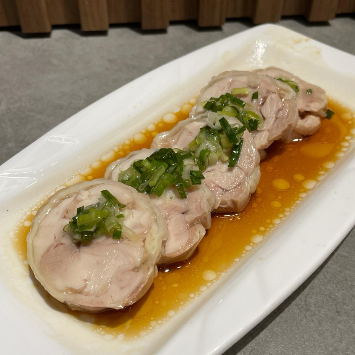 口味可以選擇蔥油或紹興,因為怕紹興酒味會很重,所以選擇比較安全牌的蔥油,蔥醬直接一小坨放在雞腿捲上,兩者味道很搭,入口時有瞬間嚐到港式油雞的感覺,我蠻喜歡的~