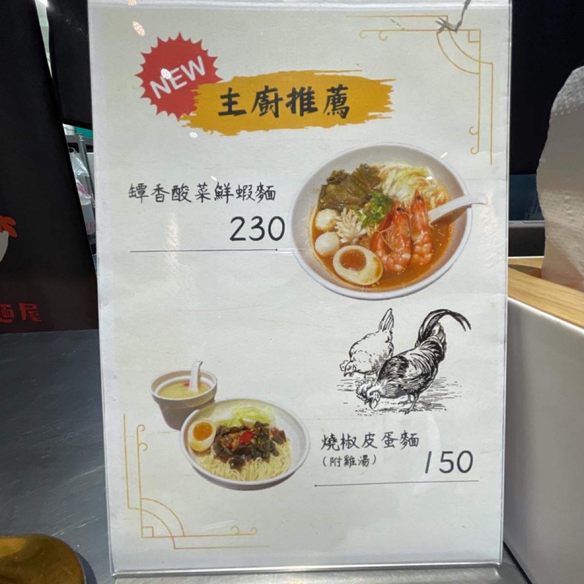 這邊的麵食分成湯麵和乾麵,湯麵部分有雞湯麵和鮮蝦麵等,乾麵則有四川擔擔麵和蔥油麵等,另外也有賣一些功夫特色菜,例如鮮蝦雲吞、雞腿捲、炸牡蠣等