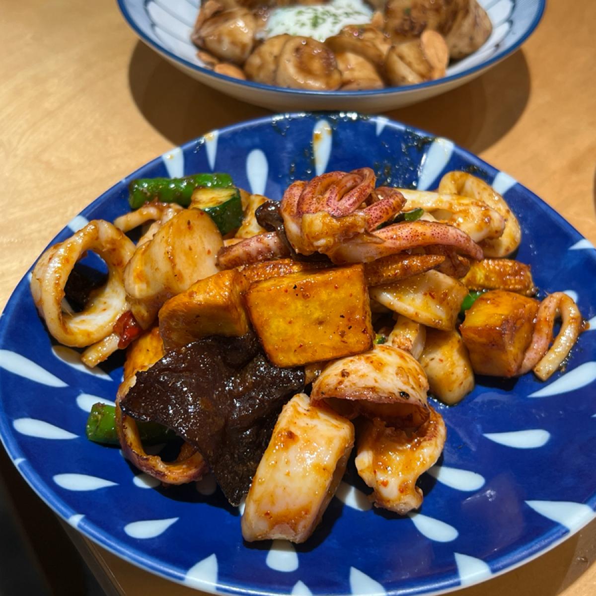 有木耳、地瓜一起拌炒的透抽吃起來沒有什麼腥味,不過稍微有一點辣度~不吃辣的朋友可能要稍微斟酌一下