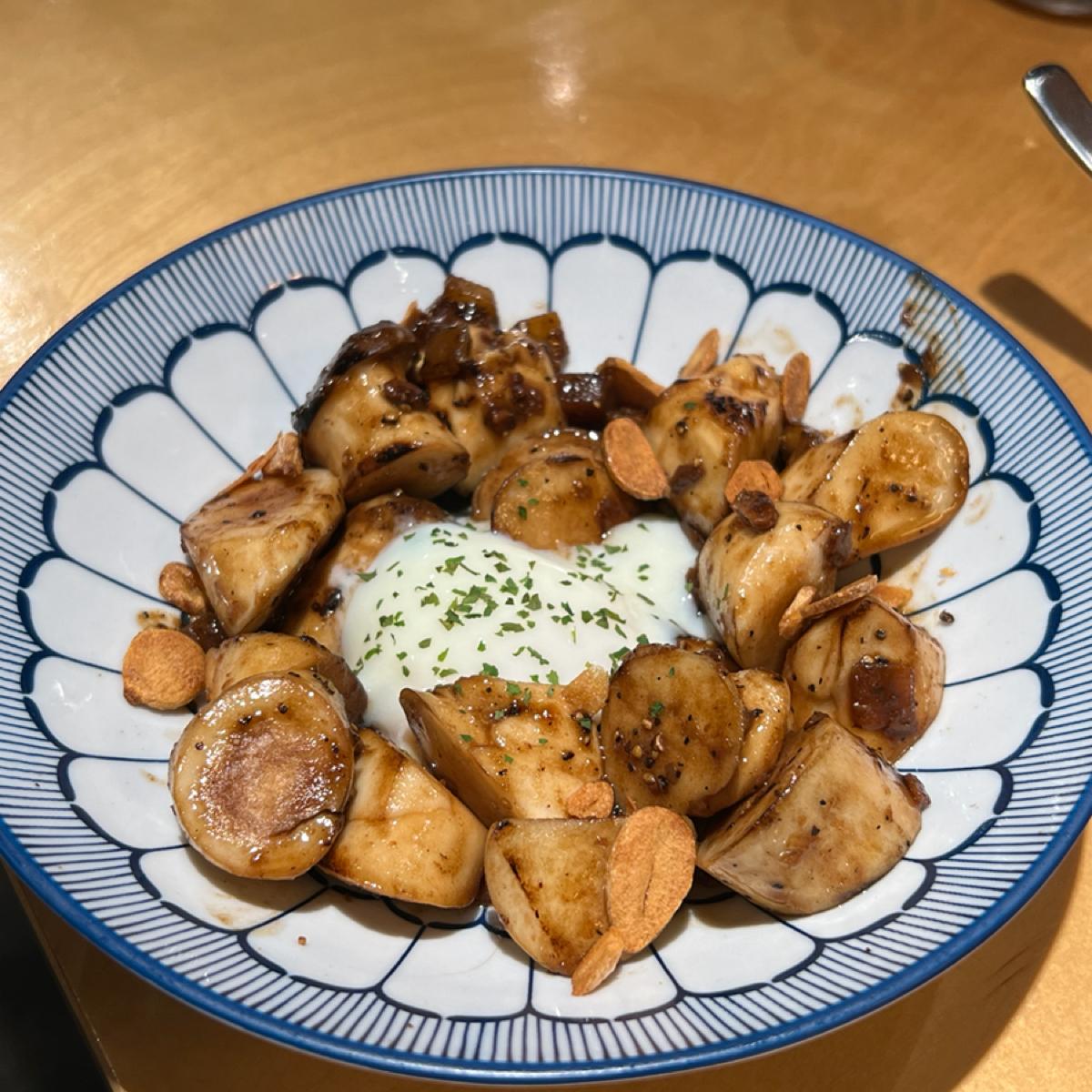 很酷的一道菜!中間是一顆水波蛋周圍圍繞著滿滿的杏鮑菇🍄