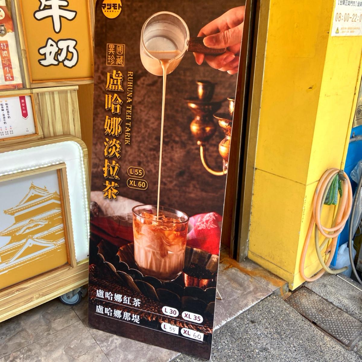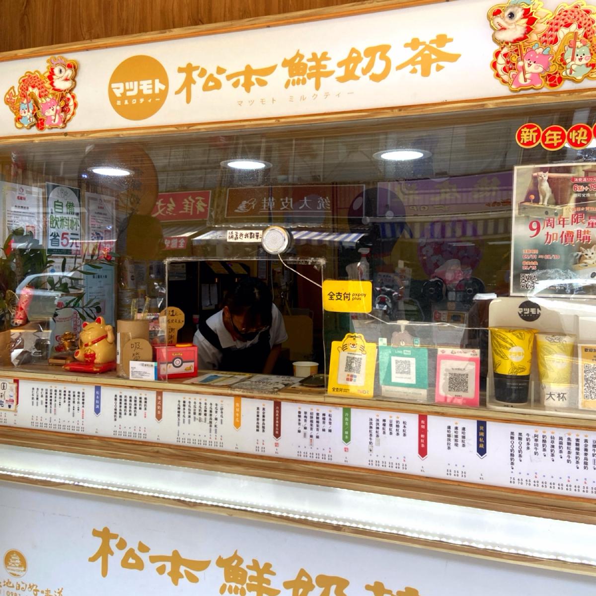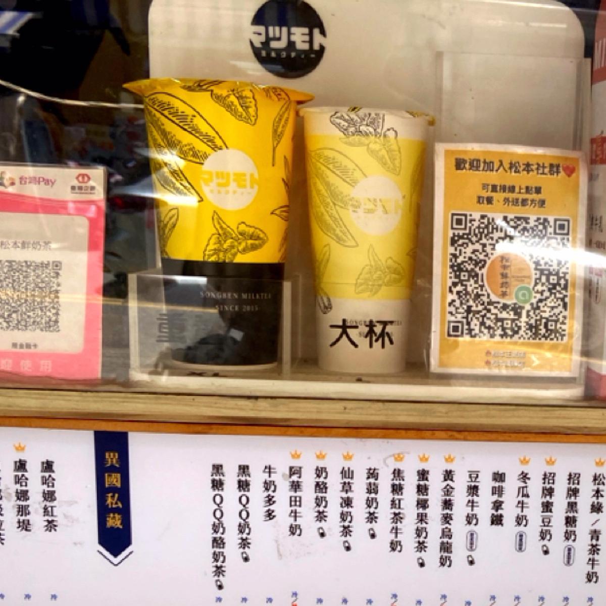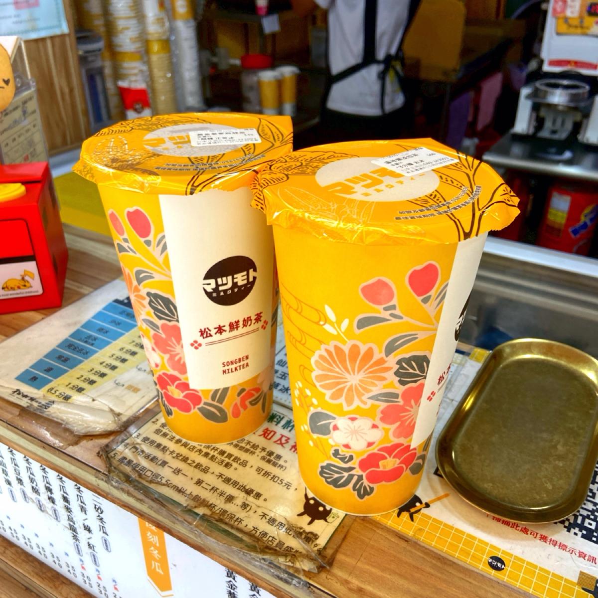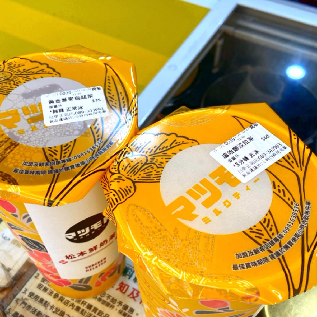 查到了在南部才有的松本鮮奶茶,在台東市區也開了一家,立即驅車前往。黃色的招牌很醒目,店面的設計風格很古早,傳統泡沫紅茶店大概都長這個樣子😆