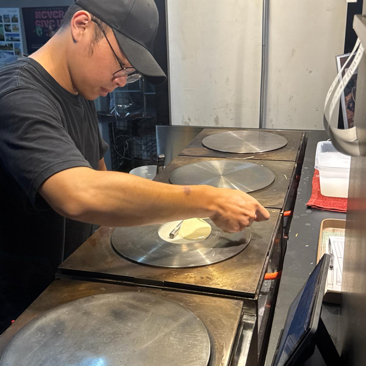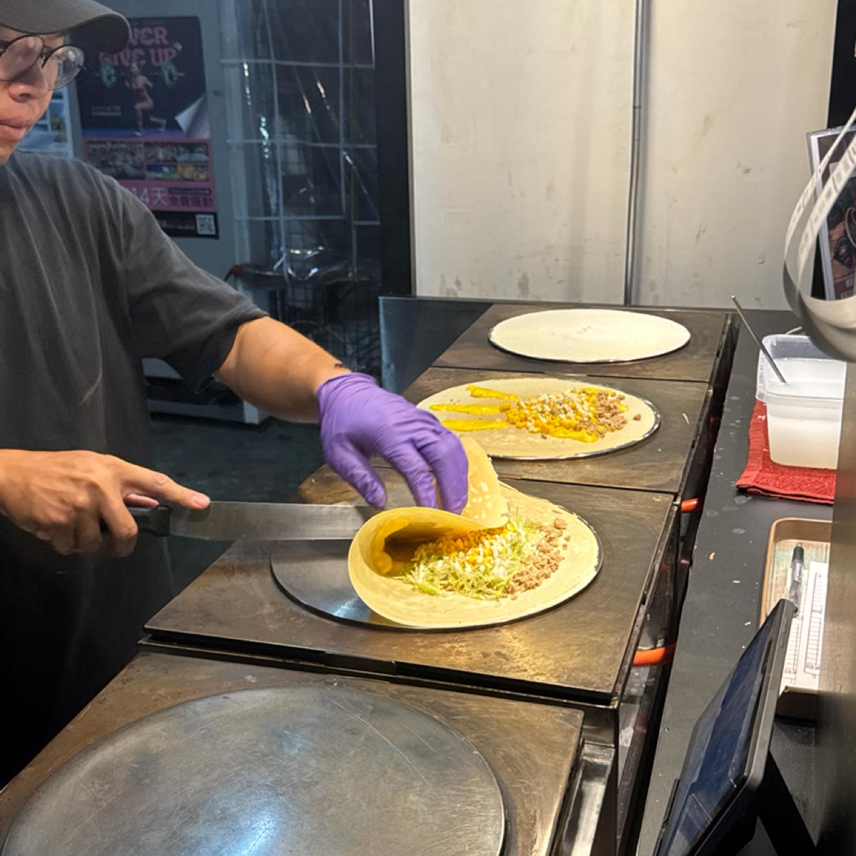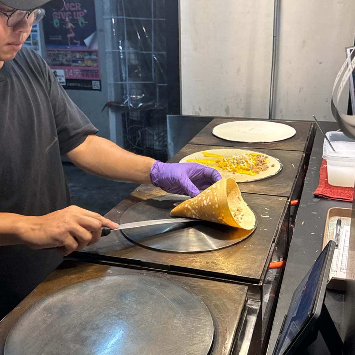 外皮是現煎的脆皮可麗餅,吃起來酥脆不黏牙,內餡則是鹹香的鮪魚搭配爽脆高麗菜絲、玉米、濃郁起司片,最後撒上胡椒提味,鹹甜交融、層次豐富,一口接一口停不下來!
