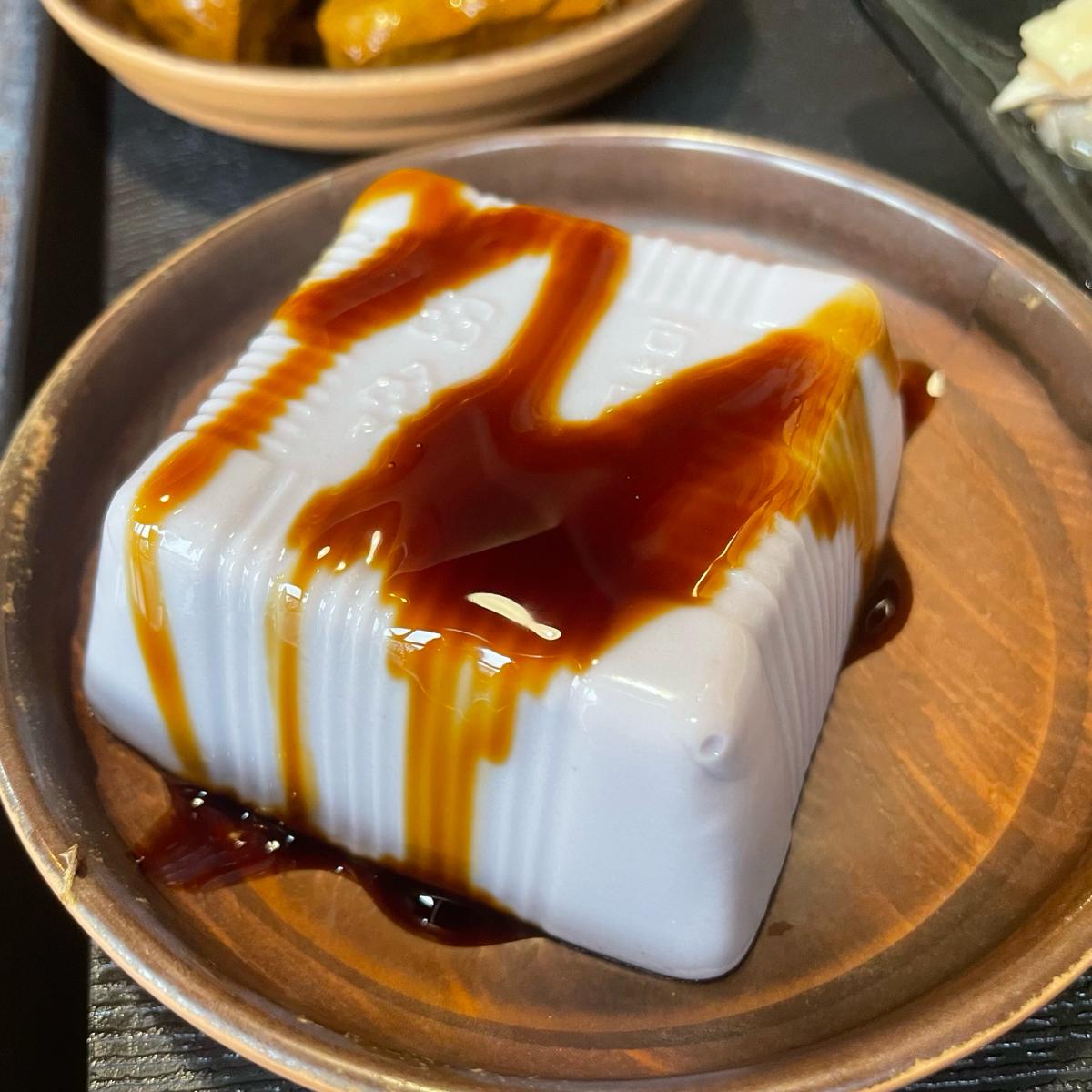 這應該是今天討論度最高的小菜,因為它實在不知道算小菜還是甜點,是淡淡的紫色,吃起來花生味超濃,口感綿密類似奶酪,如果不加醬油膏的話其實可以當作甜點吃,但加了醬油膏後就...嗯...很特殊,不過也不會不好吃,大家可自行感受