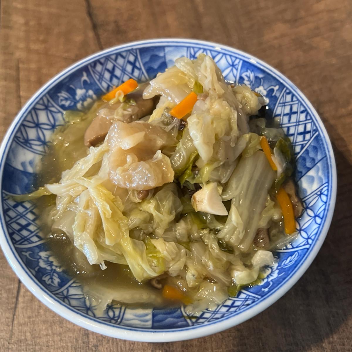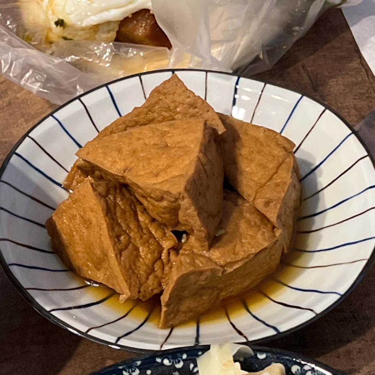 小菜裡我最喜歡筍絲,酸香爽脆。滷白菜滷得蠻透的。油豆腐滷得夠味,表現中規中矩。紅茶也不錯,剛好拿來解膩。