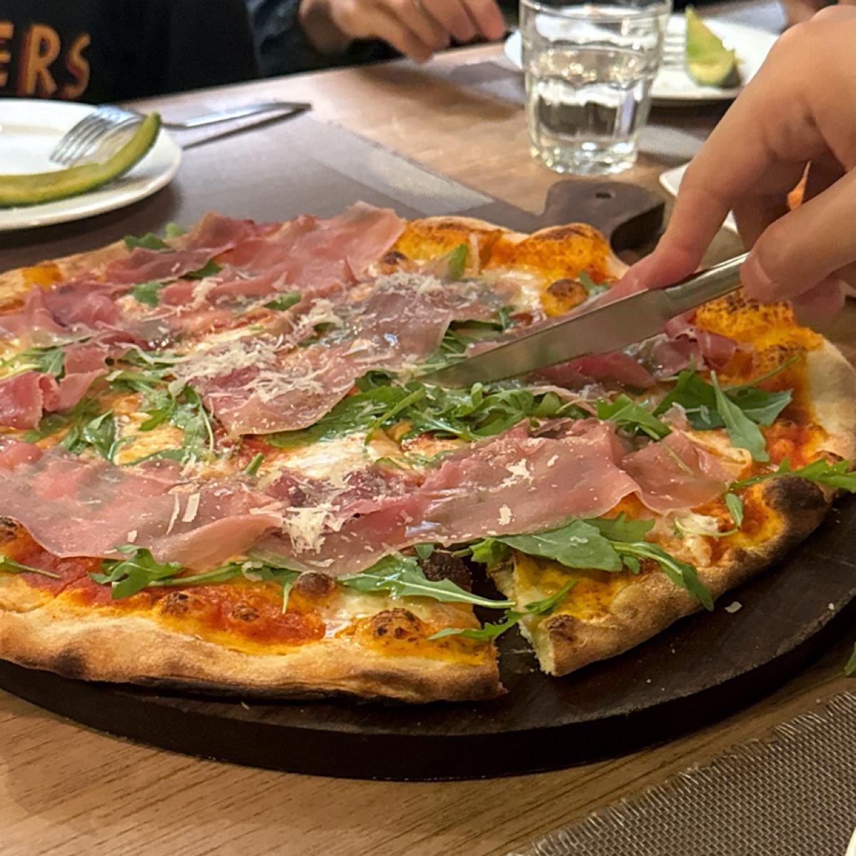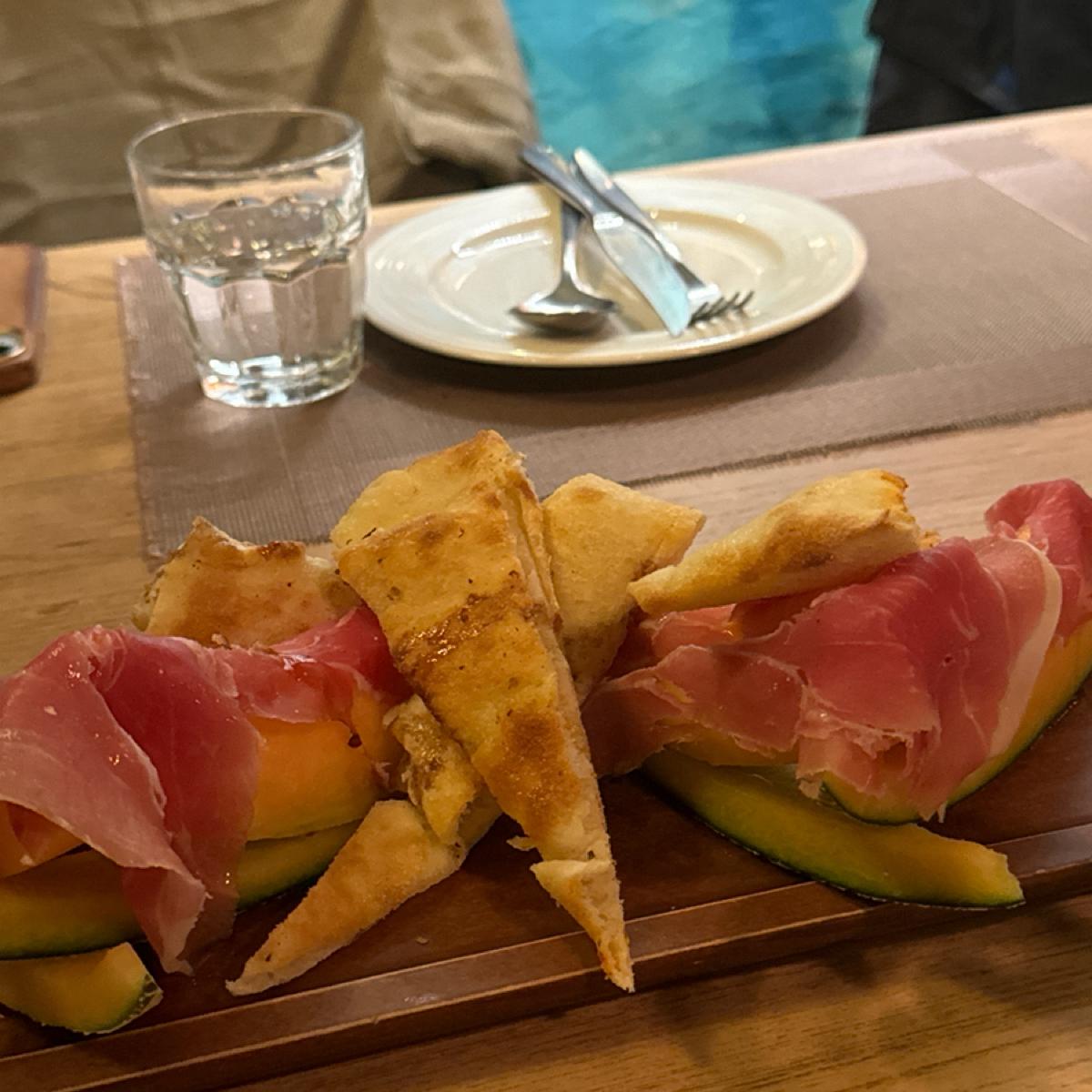 前菜的生火腿哈密瓜蠻好吃的,哈密瓜很甜!披薩普通,記得也有點一個牛排,不難吃~