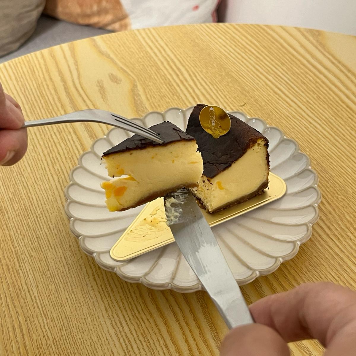他們家的巴斯克口感都是比較滑順軟嫩的,就很像半熟巴斯克!所以就算吃完也完全不會乾或膩~而且這款真的有起司塊在裡面!整體有三種不同的起司融合而成,所以起司的味道層次豐富,也非常濃郁~