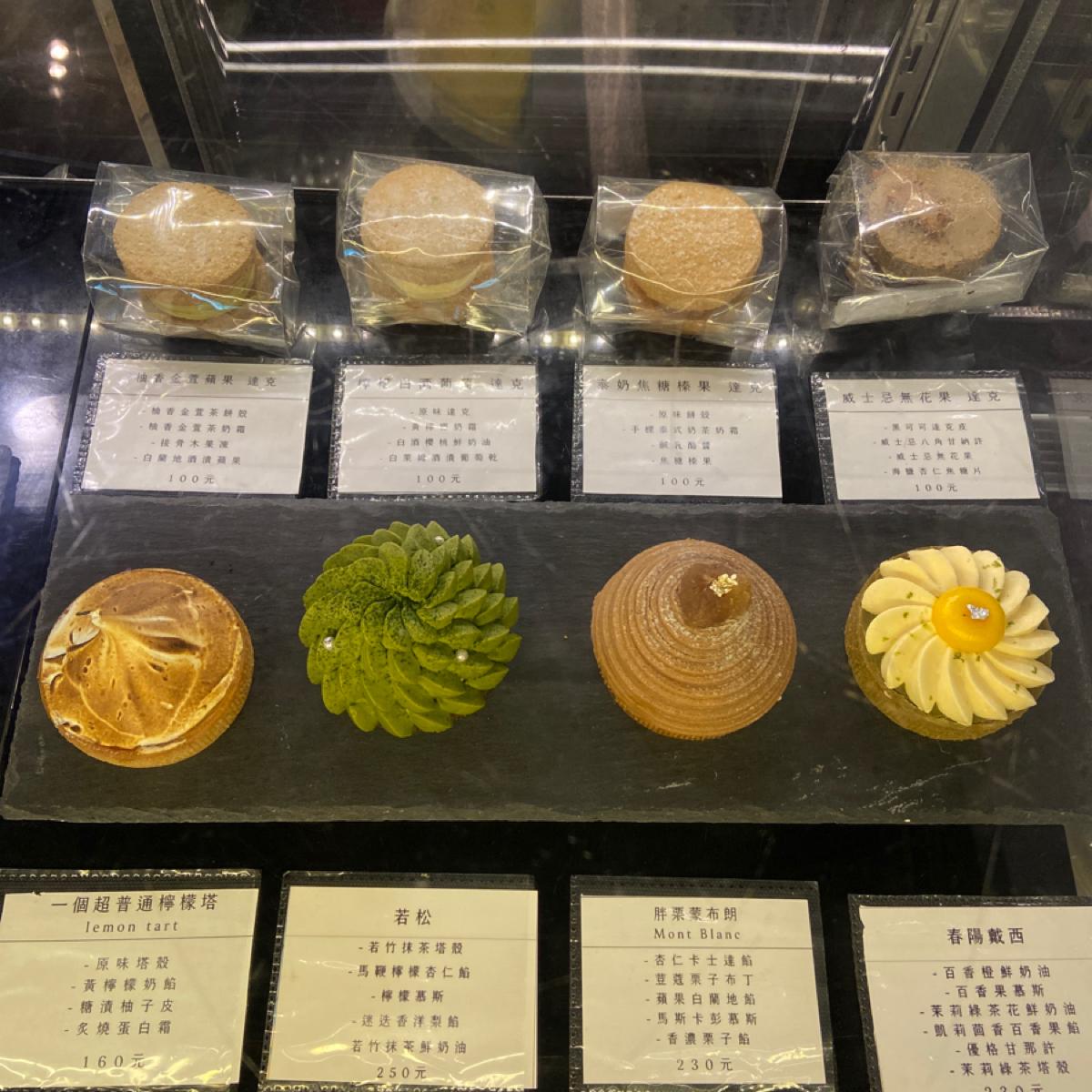 甜點是自家的甜點師在廚房製作,以法式甜點為主,有達克瓦茲、巴斯克乳酪蛋糕、戚風蛋糕、布丁、塔類、季節限定款式,每天會在IG更新當日品項。