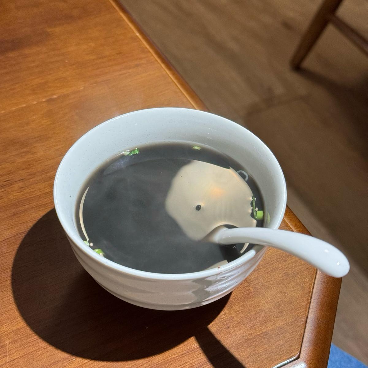 丼飯都有附湯,當天的是顏色超深的軟絲味噌湯