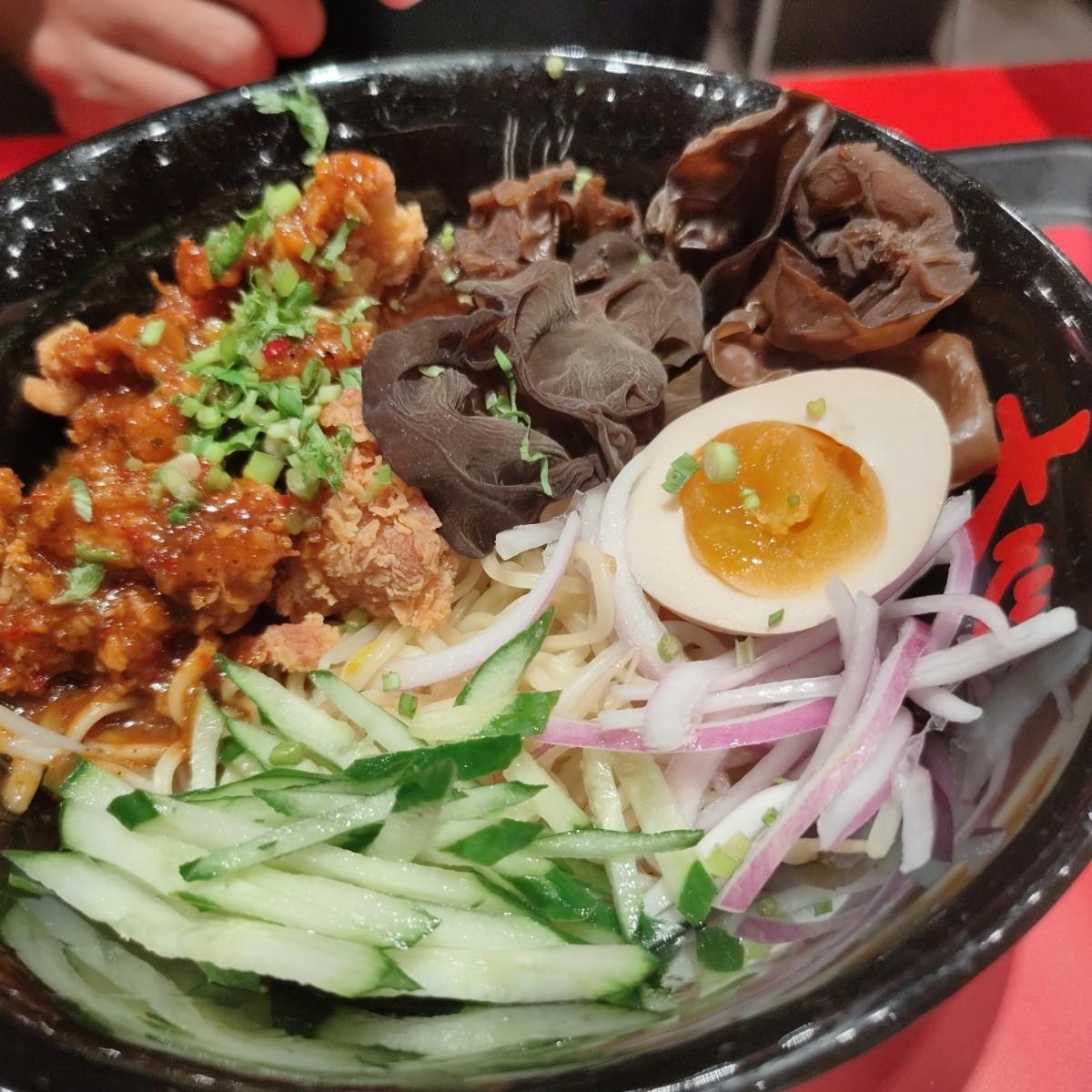 椒麻雞拌麵:椒麻味道調味不重,麵有Q,其它配料都差不多。