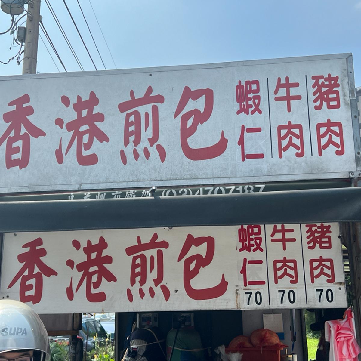 香港煎包,簡樸的小吃攤(餐車)供應包有肉類跟海鮮內餡的港式煎包。三種口味可供選擇:牛肉70元、豬肉70元、蝦仁70元。(店家介紹)