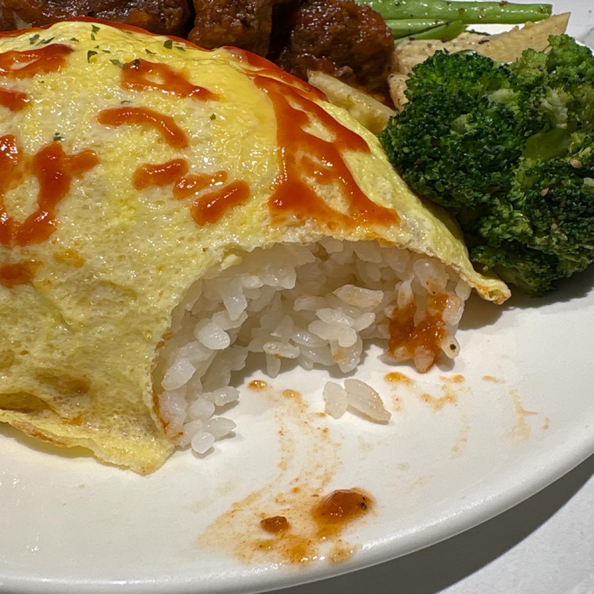 我點了一個蛋包飯,蛋包飯可以讓女僕在上面畫一個小圖案。我指定了獅薩,是由里依畫的,神韻有到,真的畫得很厲害!說到飯,白飯警察當然要好好看一下白飯煮的如何。這個蛋包飯的飯煮的挺剛好的!我有特別拍一張,大家可以看看。