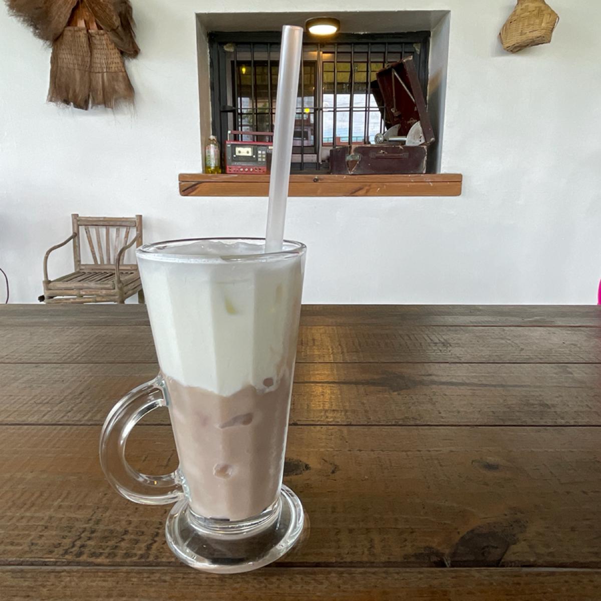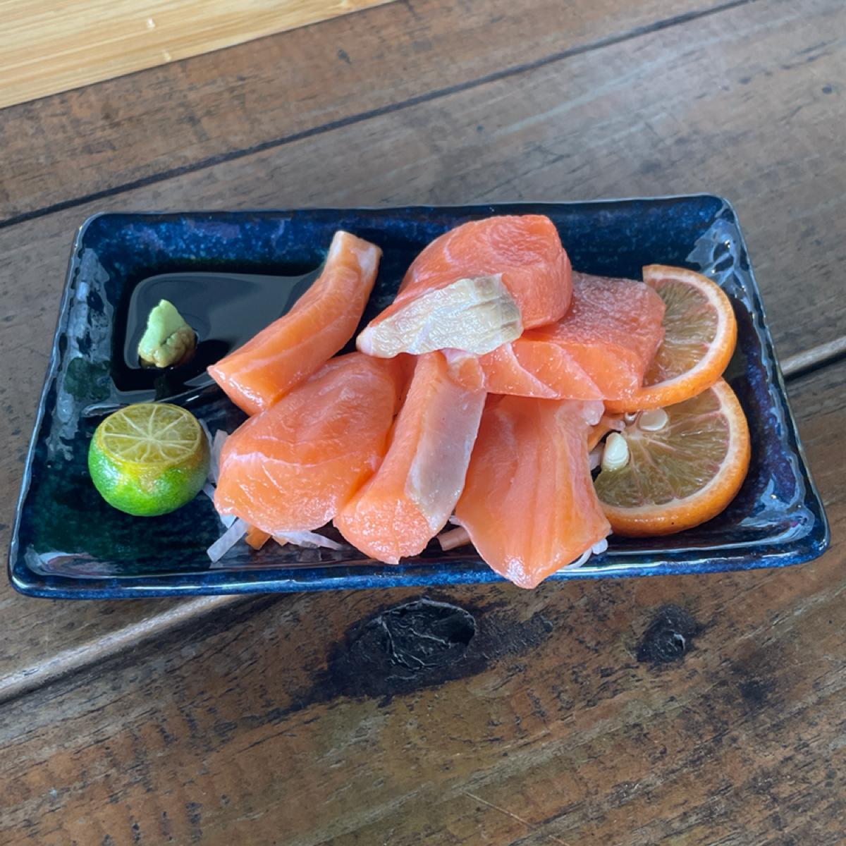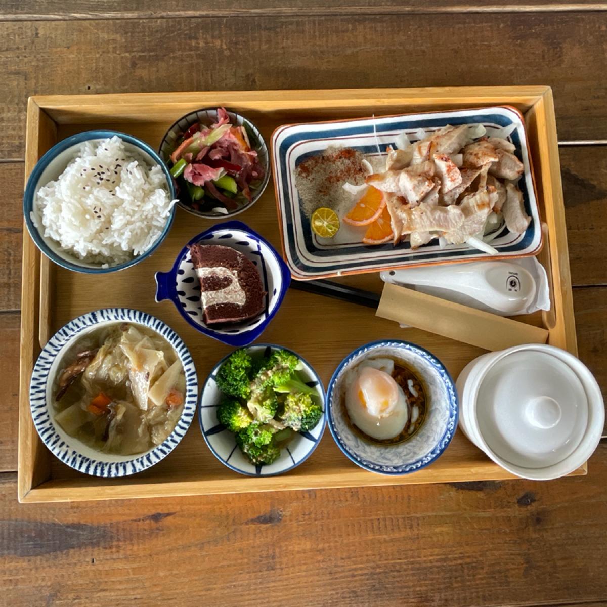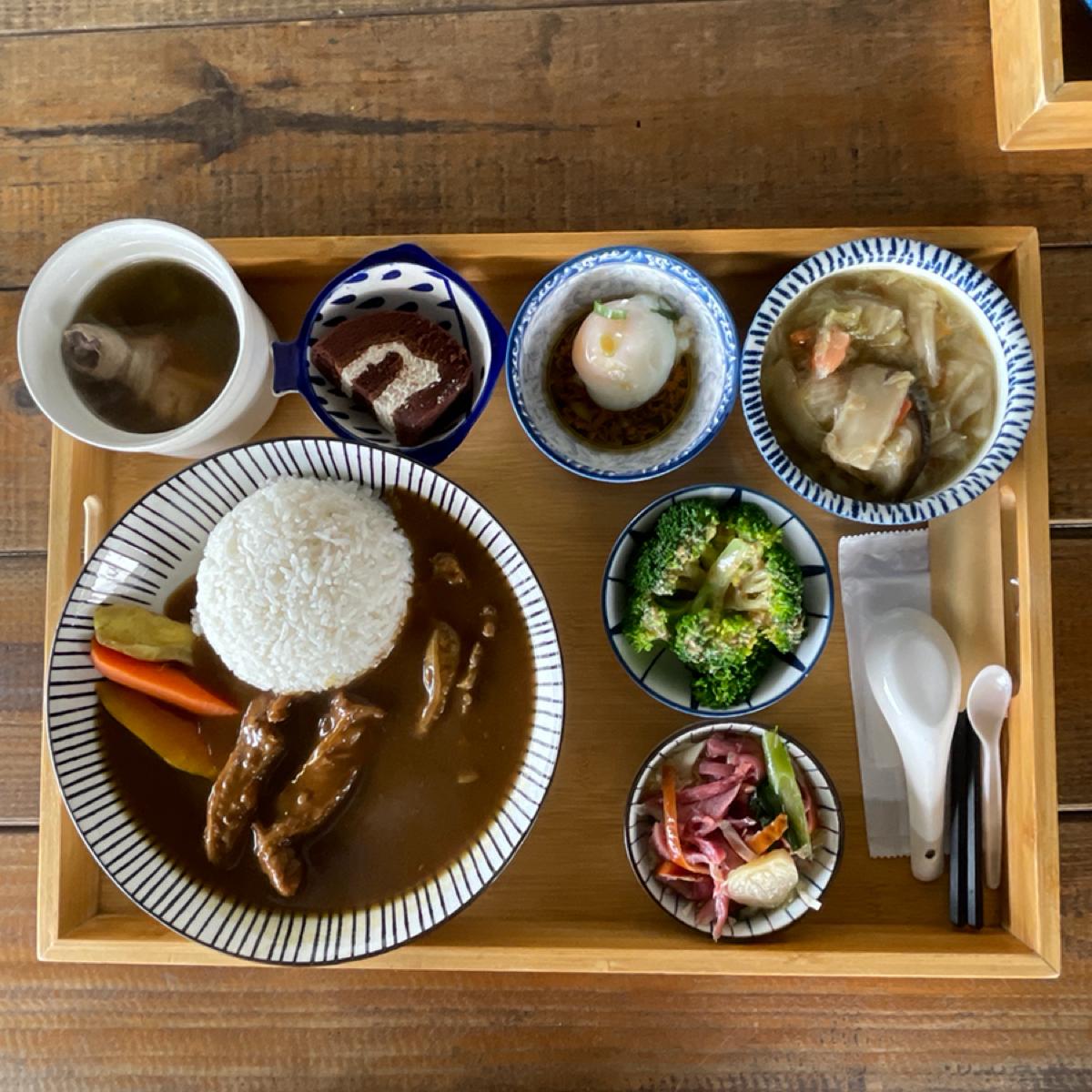 餐點以定食為主,他們鮮魚定食好像蠻多人點的,菜單還有介紹魚的口感蠻貼心的,我們三個人點了松阪豬跟日式牛肉咖喱共兩個套餐,每一份有四個配菜一個湯品跟一塊小蛋糕,我覺得味道還ok,配菜口味偏清淡,感覺長輩會蠻喜歡,但就是菜有點冷,另外加點了生魚片,吃起來蠻新鮮的,還點了一個大阪燒雞蛋,長得很像大阪燒的雞蛋,口味還不錯。飲料部分我點了芋頭奶奶,就是芋頭加鮮奶,我的菜。我覺得份量算多,我們三個吃完超飽,但價格上感覺比想像中更高一點點。