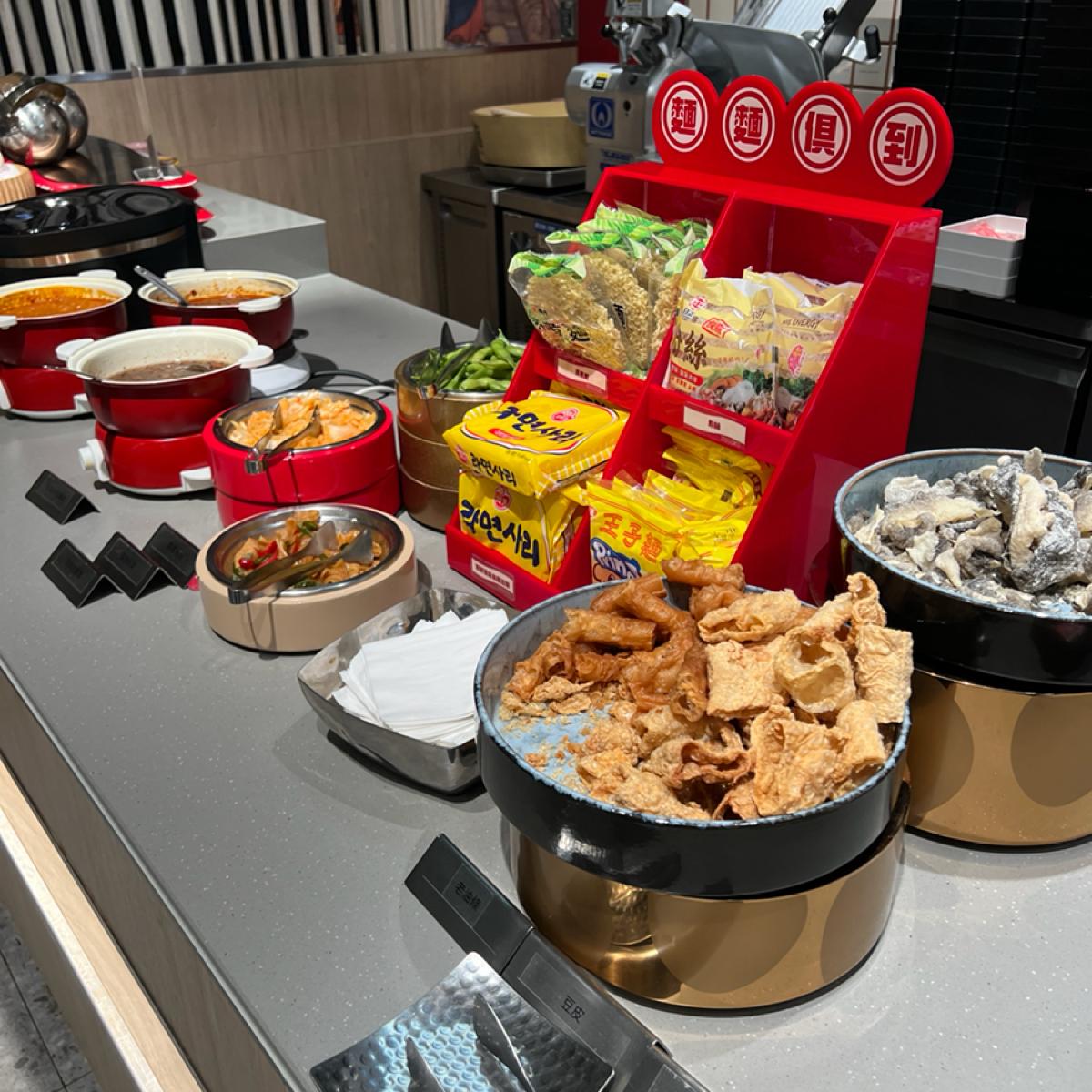 🦐 海鮮自助區補得快,像蝦、蛤蜊、小卷看起來都蠻新鮮的。