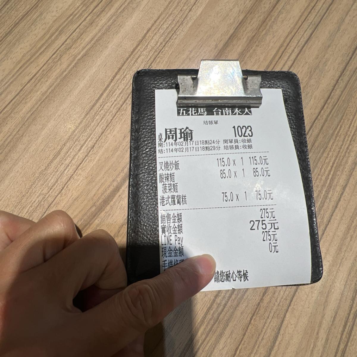 這次去永康的「五花馬」,結果是一次失望的用餐體驗。