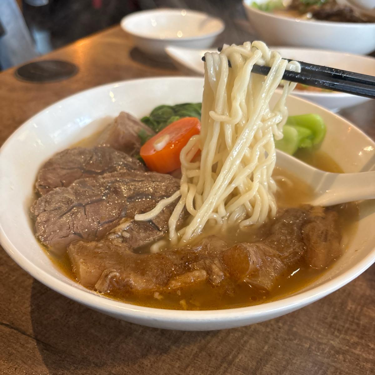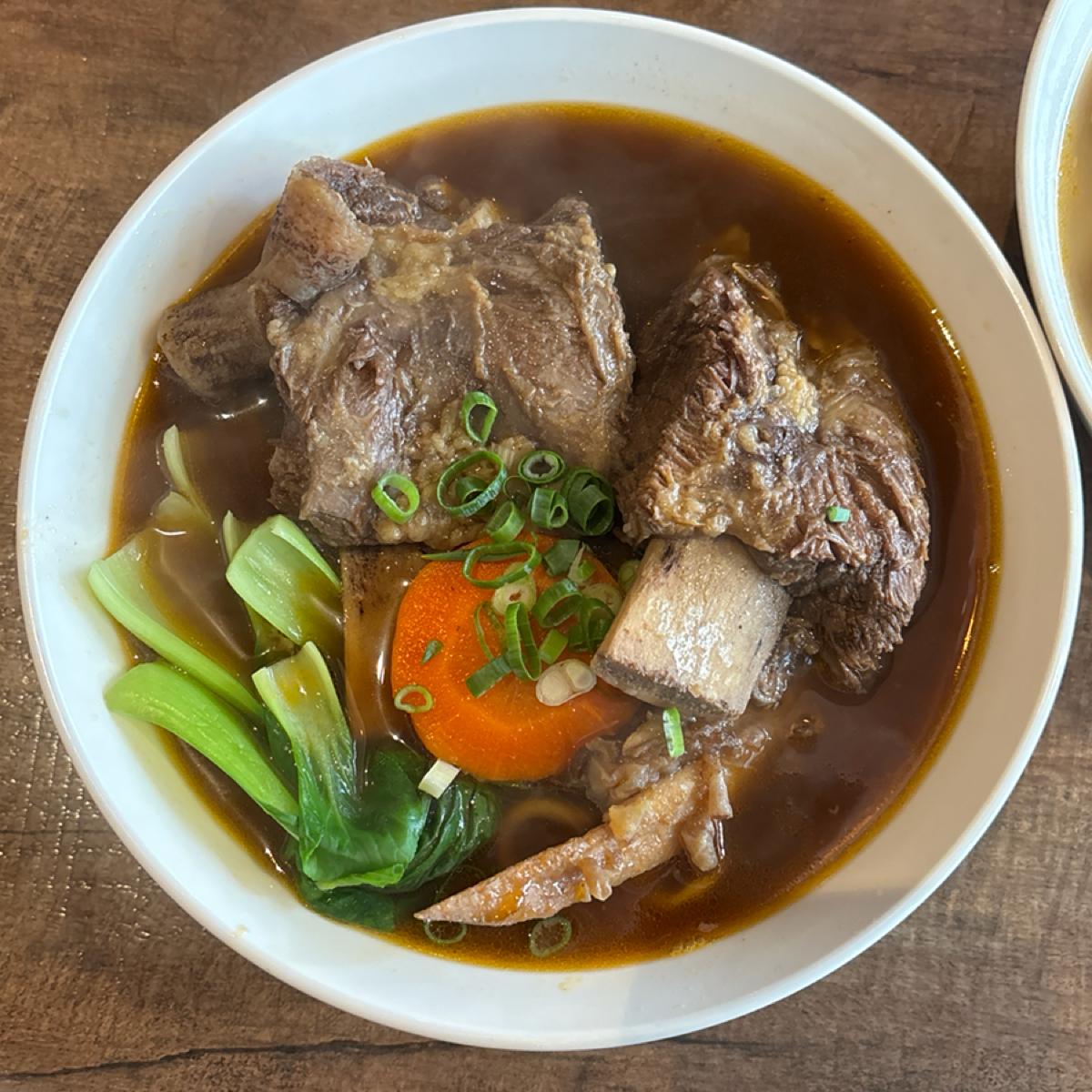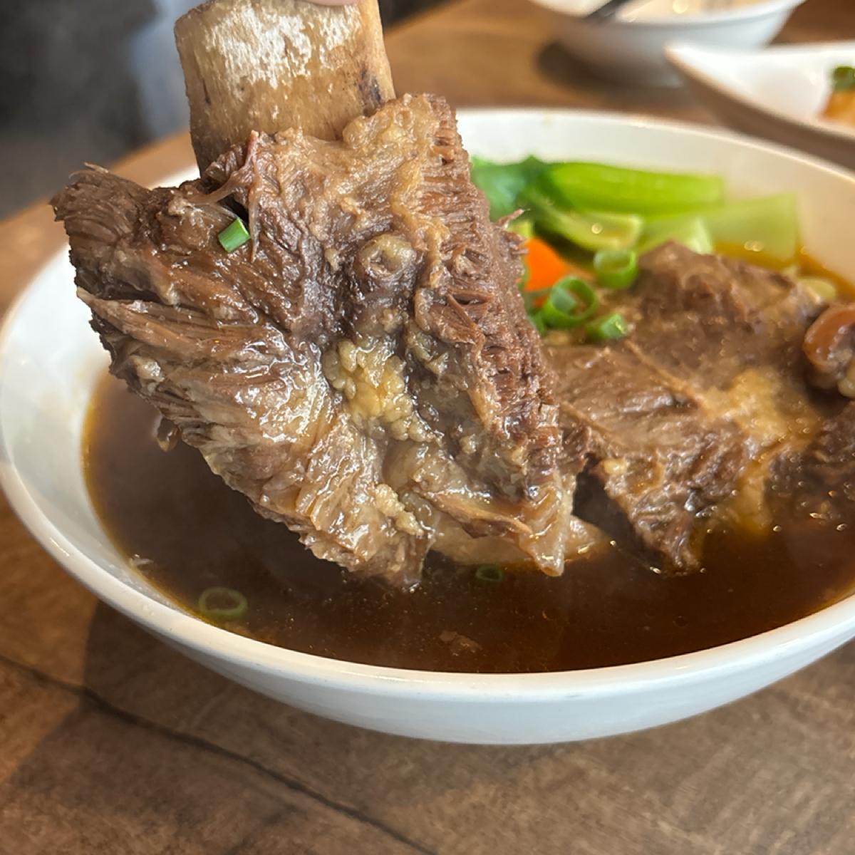> 畫面上很吸睛的牛排骨麵,雖然骨肉好分離,但肉的部位沒有清燉的萊德嫩,也有可能跟厚度有關~帶皮還是帶筋膜的地方是彈、脆的口感