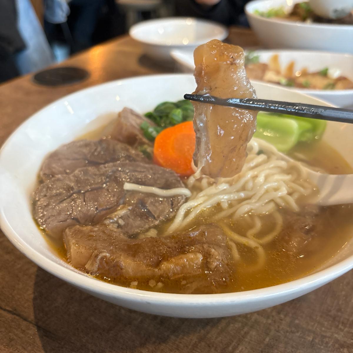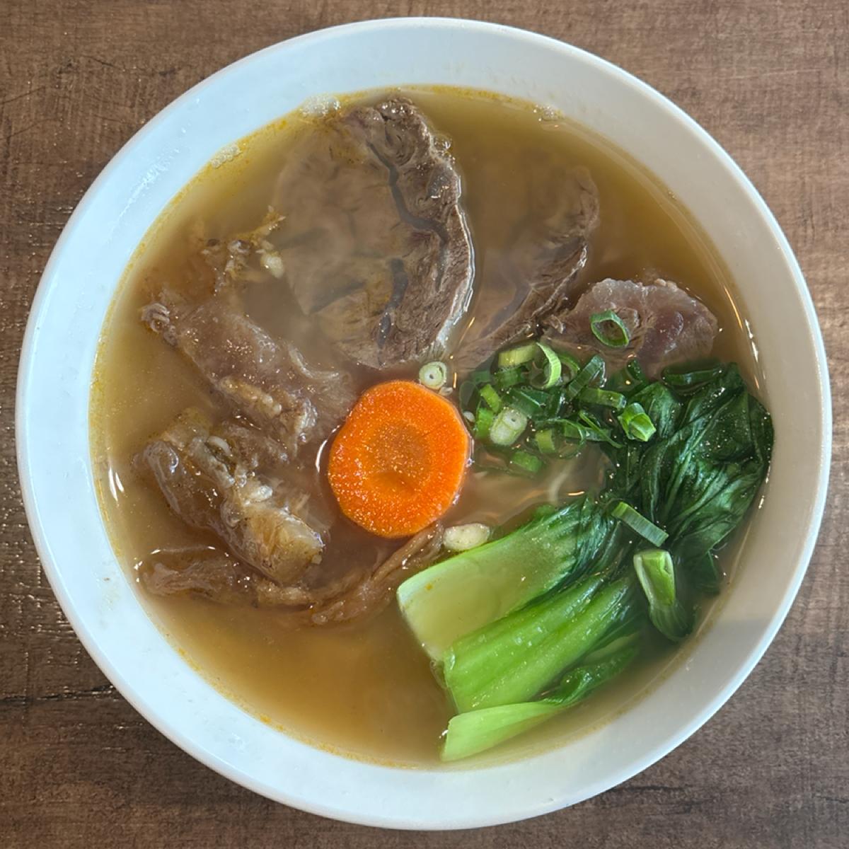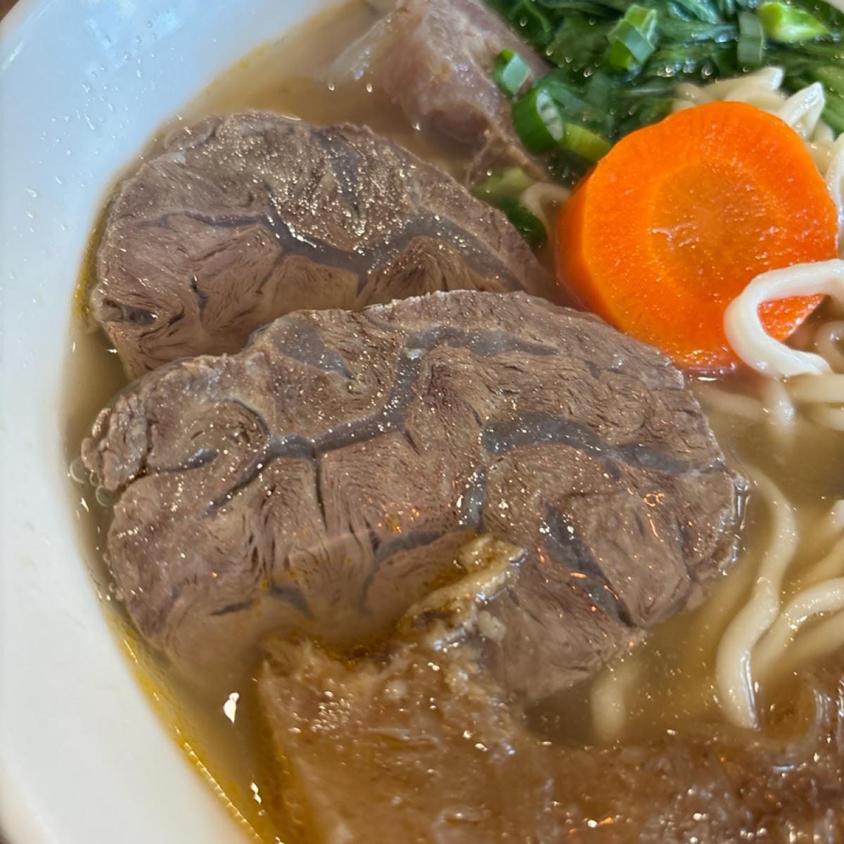 > 清燉的湯頭喝得出蔬果的鮮甜,牛筋燉煮到很軟、有黏性!肉的部分不會乾柴,切得稍微有一點厚度,以價格來說還是偏貴,但好吃..久久買一次可以接受