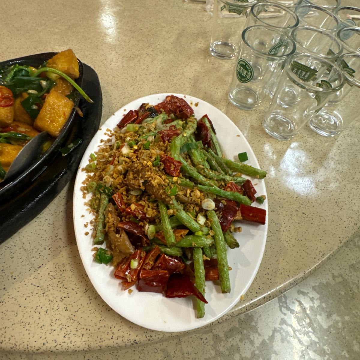 -脆皮肥腸-肥腸的部分炸的滿小又乾的,份量不多,旁邊都是炸四季豆跟花生