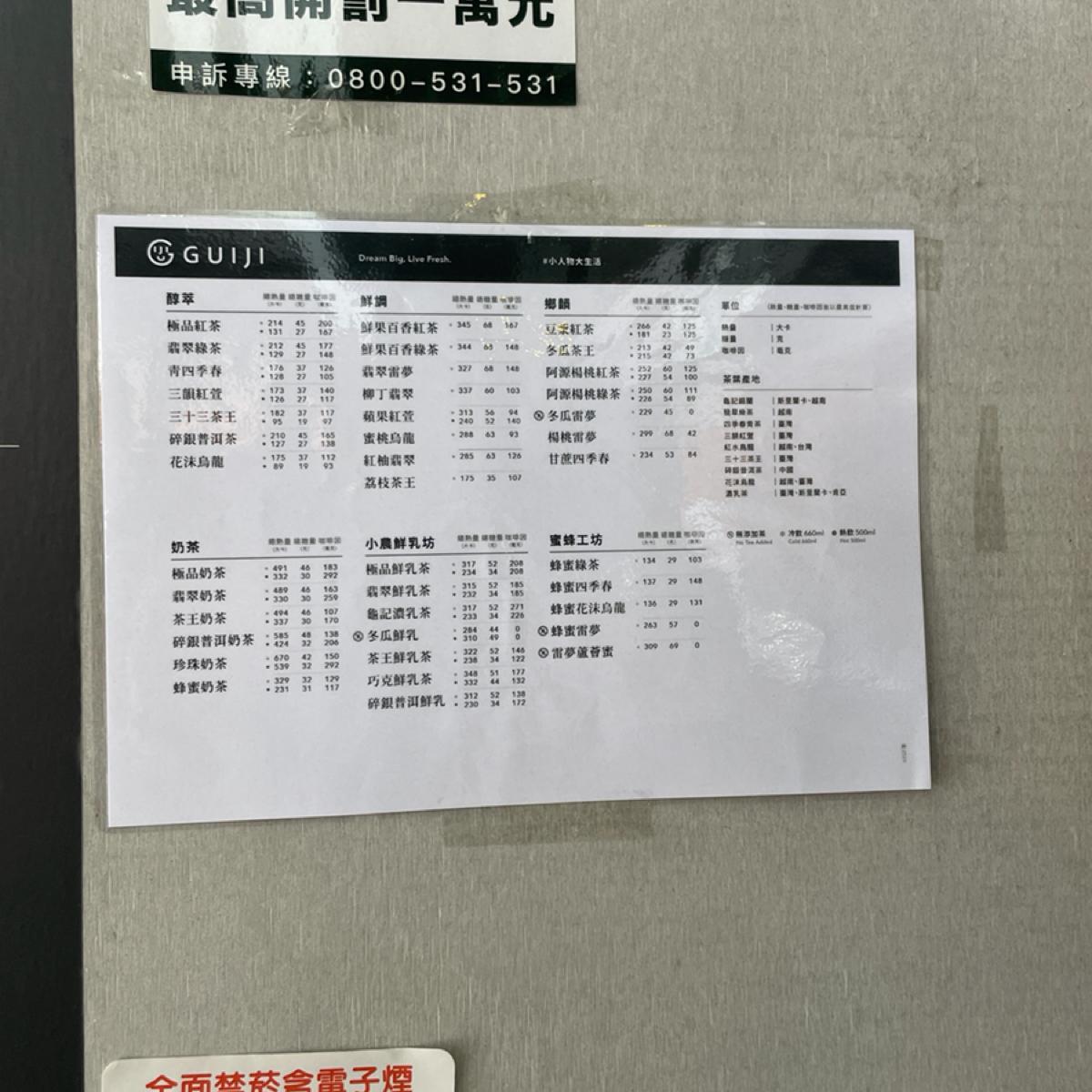 龜記在宜蘭市中山路上,有少數路邊停車格,但幾乎沒遇過,蠻難停車的。但他們有線上點餐系統可以先點免去現場久候的時間,到現場取餐時發現他們除了熱量標示還有糖量、咖啡因標示,我第一次在手搖店看到(還是我見識淺薄?),個人覺得很不錯,可以讓有需要的人參考。
