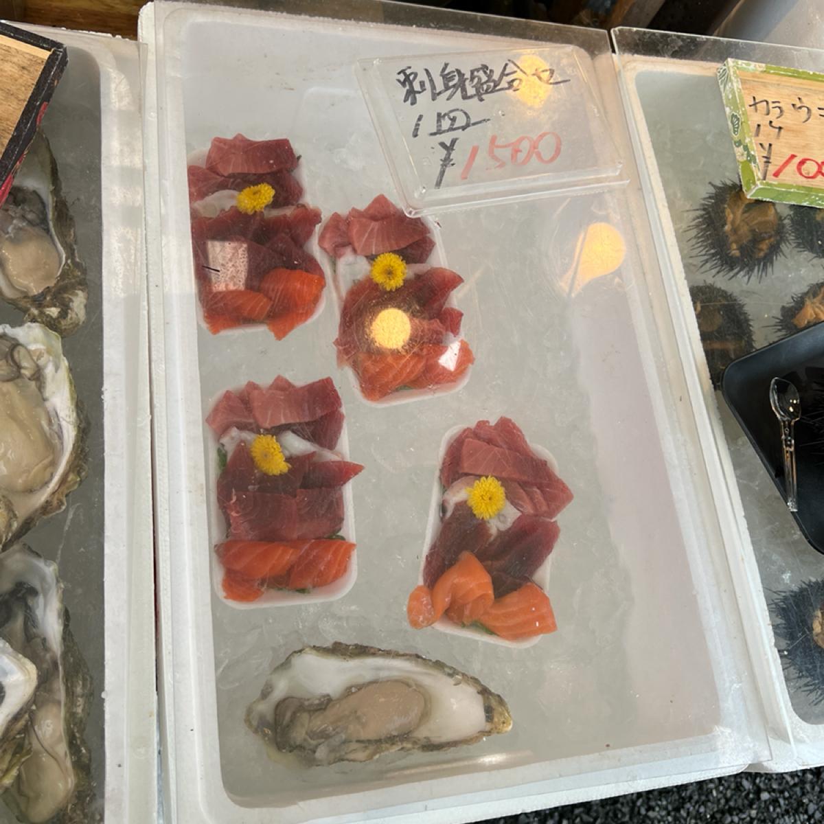 這間店位在築地市場出了門口之後,大馬路往右走一小段距離就可以看到。特別的是那一天我們過去的時候,有三個店員,其中兩位阿姨他們都是用中文在講話的,經詢問之後發現他們是大陸人。所以我們再跟他詢問海鮮的一些資訊的時候,他們都還蠻熱心的會跟我們回答。