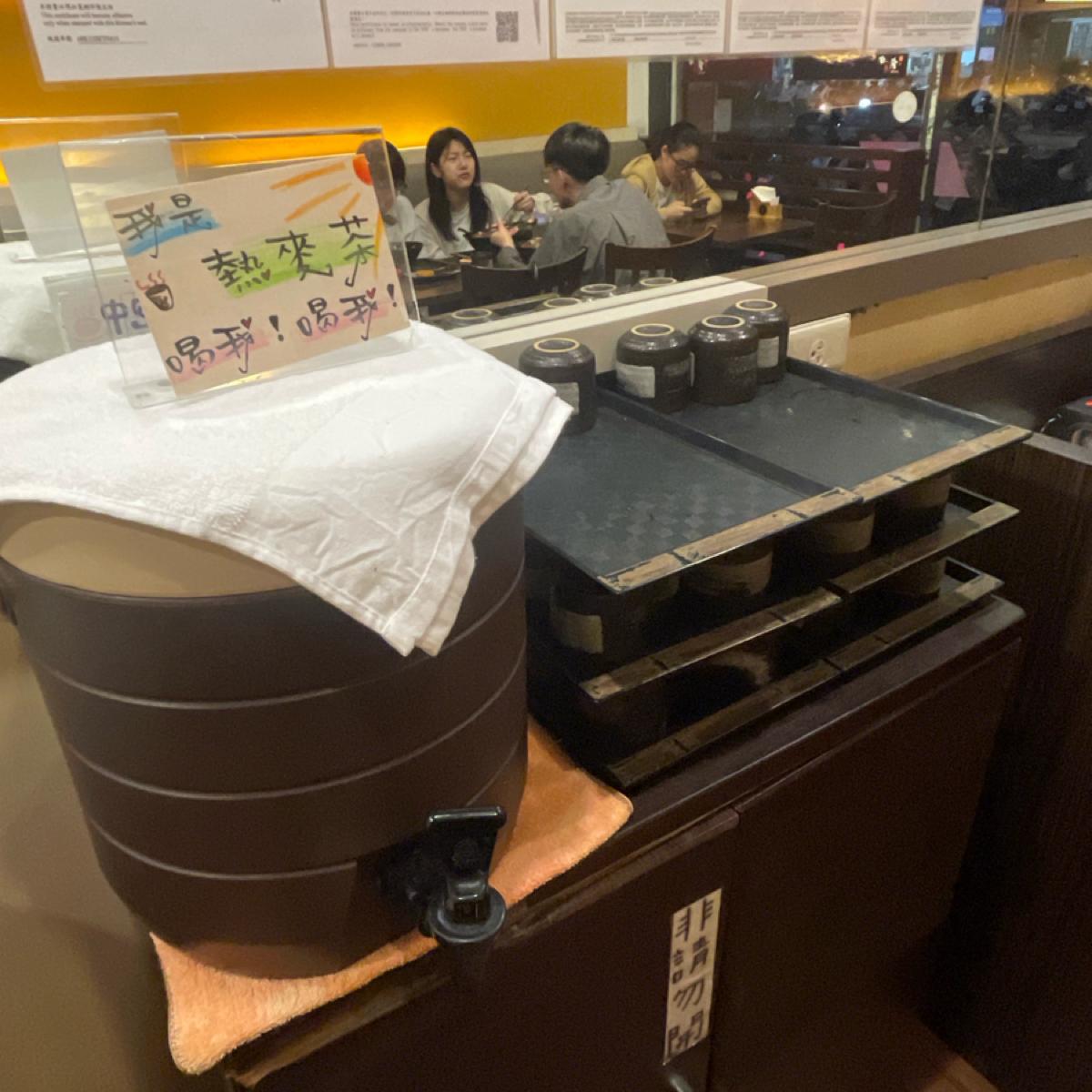 點丼飯本來就會附一碗味噌湯,喝完一碗還不夠嗎?你是味噌湯肚嗎?不用擔心,這邊可以味噌湯喝到飽!另外也有提供免費的熱麥茶喔!