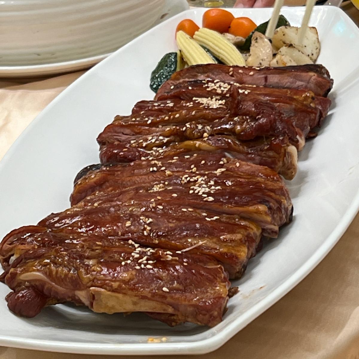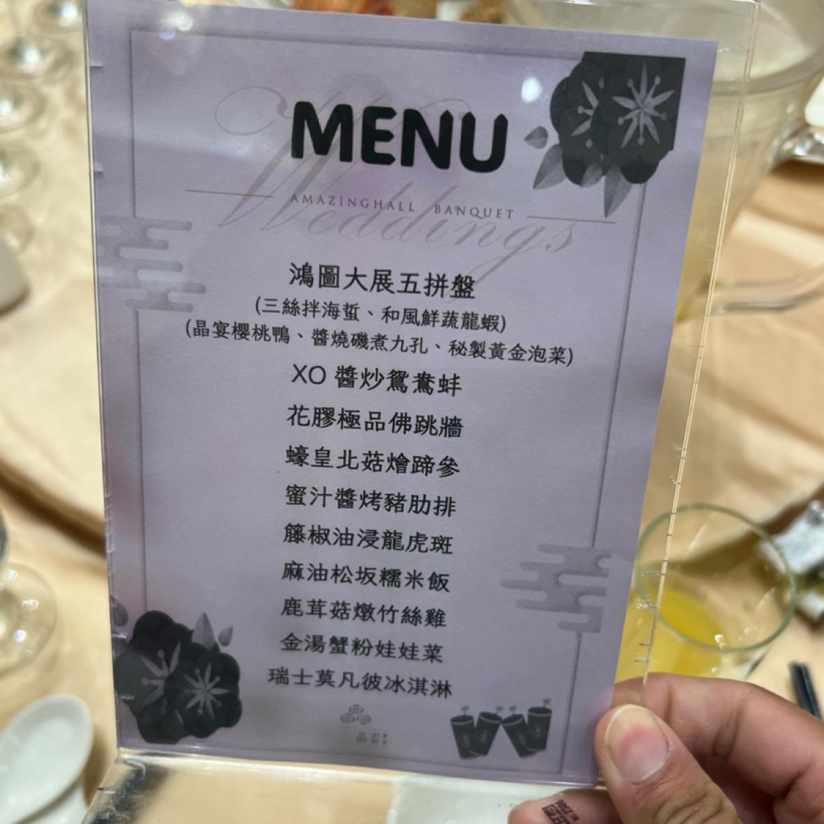這次桌菜有十道菜,開胃冷菜拼盤、貝類、佛跳牆、蹄參、豬肋排、龍虎斑、雞、蔬菜、糯米飯、甜點,宴會的餐點整體中規中矩,不難吃但也沒特別,但食材感覺用料實在。