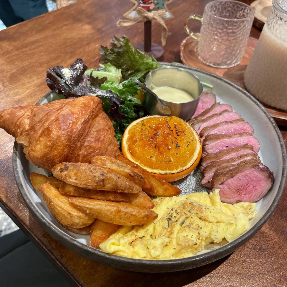 友人點早午餐,我有吃一塊鴨胸不柴,他們覺得還不錯。