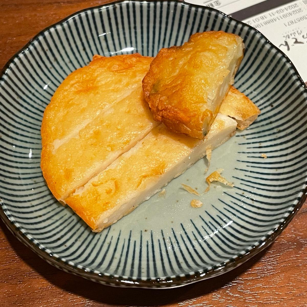 炸物點了新台揚(類似甜不辣)$35、金沙花枝天$45